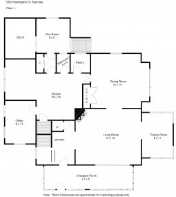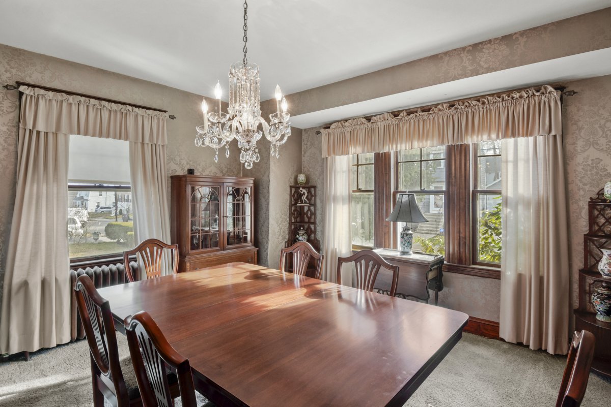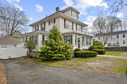 Lots of charm in this stately home situated on corner lot w/views of Sunset Lake. From the enclosed front 3-season porch, the front entry welcomes you w/grand staircase, high ceilings, inspiring detail & antique working elevator. Original hardwood floors throughout & detailed woodwork. First floor layout includes kitchen w/pantry, formal dining room w/built in china cabinet, living room w/fireplace, family room (or sitting room) w/french doors, office, sunroom & 1/2 bath. The second floor boasts master w/private access to side roof deck, 2 addt'l bedrooms, full bath, bonus room w/walk up attic with potential for expansion. Full Basement w/ family room w/bar, laundry & lots of storage. Detached 3-car garage & driveway entrance from both Washington & Frederick St. Convenient location, short distance to Red Line T-Station /bus station, shopping, highways, restaurants, SS Plaza and shops. Bring your vision to make this home your own.
