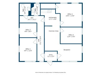 Looking for new office space for your business? This well maintained building could be the one! Providing 4 private offices, a large reception area, common space and a kitchenette - all with hardwood floors, as well as two half baths! Forced hot air heat by gas, as well as Central AC. Interior walls may be moved for your layout preferences. Could be a great space for real estate, law, dental, retail and more! Able to be divided for possible sharing of space. Hot water heater recently replaced. Situated in a convenient location in downtown giving your business lots of exposure. Basement storage as well.