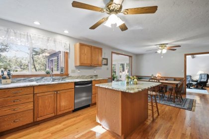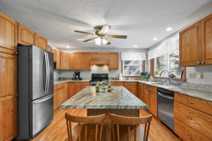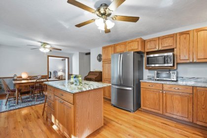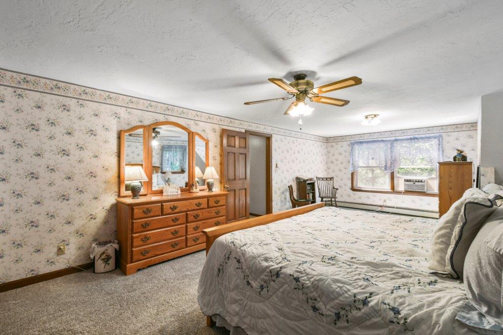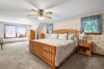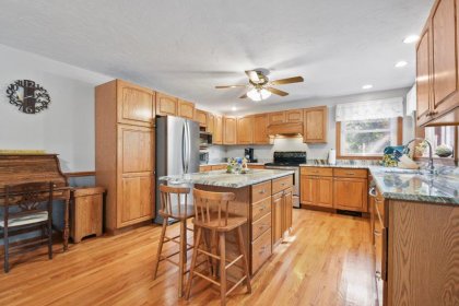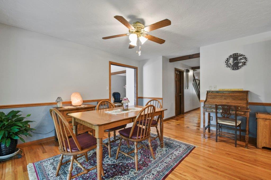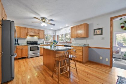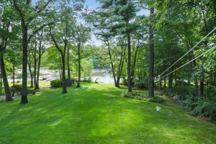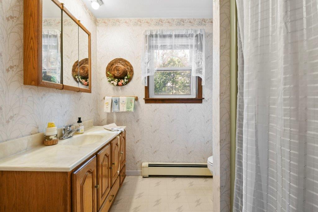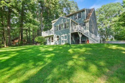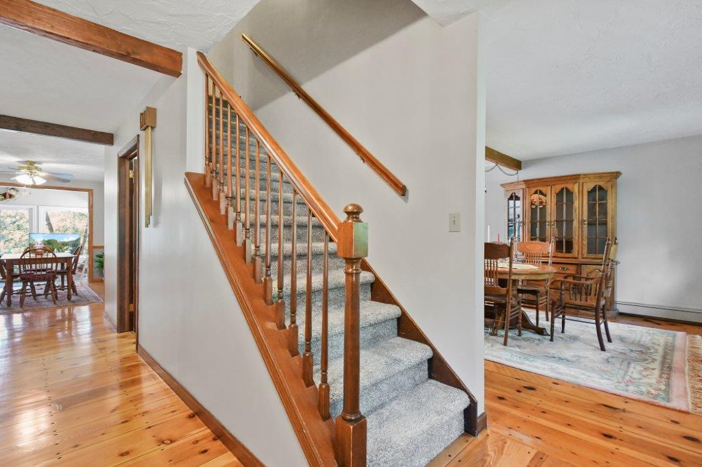 Discover tranquility at this charming Cape nestled along the serene shores of Baker Pond & embrace the beauty of waterfront living. Enter to find an inviting fireplaced living room adorned with rustic beamed ceilings, gleaming HW floors, & sliders that open to the back deck, connecting indoor & outdoor spaces. The main level unfolds into a formal dining room, seamlessly connected to the living area, perfect for gatherings and entertaining. An eat-in kitchen beckons with its HW floors, complete w/ an island boasting a breakfast bar, S/S appliances, & granite countertops & a sunroom invites to enjoy nature year-round! A convenient 1st floor bedroom completes the main level. Ascend to 2nd level, where 3 good-sized bedrooms await. The finished lower level unveils an inviting bonus room & storage rm. The expansive yard guides you to the water's edge, where a private dock awaits, beckoning for leisurely afternoons of boating & contemplation. Attached garage and plenty of off street parking!