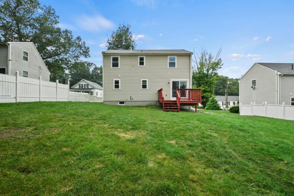Welcome Home! This meticulously maintained Cape is awaits new owners and is nestled in the city of Worcester! As you enter, you will be greeted by a spacious living room adorned w/ HW floors & a bay window, bathing the room in natural light. The eat-in kitchen is a chef's dream, featuring stainless steel appliances that gleam against the backdrop of white cabinets & granite countertops. Glass sliders open up to a private back deck, providing a seamless transition for outdoor entertaining. You'll also discover 2 full baths and 3 good-sized bedrooms, each boasting ample closet space!. The updates in this home are truly remarkable, with a newer hot water heater, granite countertops, natural oak hardwood floors, newer windows except bay window, kitchen and bathroom tile work & newer appliances and cabinets. Outside, the back deck overlooks a level yard, creating the perfect setting for outdoor gatherings & activities. Don't miss the opportunity to make this house your forever home.