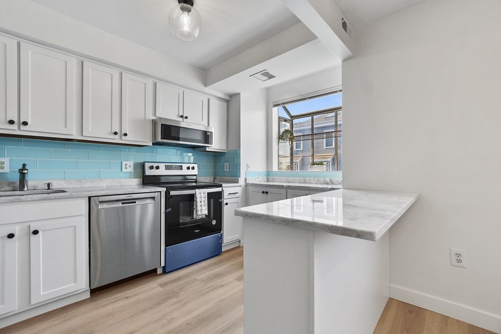 Look no further! This well-maintained townhouse is located in Beverly’s desirable Prospect Hill and awaits YOU! This multi-level unit features generous natural light throughout! The bright and sunny living room provides a vaulted ceiling and wood burning fireplace – where you can cozy up next to on those chilly fall evenings! One half-level up brings you to the open kitchen/dining area offering updated cabinets, gorgeous quartzite countertops, new stainless-steel appliances, tile backsplash and pantry. A full bath and in-unit laundry complete this floor. Moving up levels, you will find the primary bedroom with a vaulted ceiling, two closets and private bath along with a second bedroom. The top floor offers an office/bonus room with sliders to a private deck – you decide! This is a pet-friendly complex, short distance from vibrant downtown, near beaches, train, shopping & amenities! Don’t miss this!