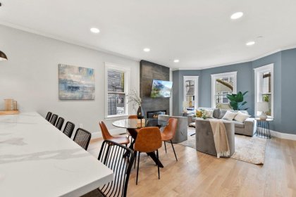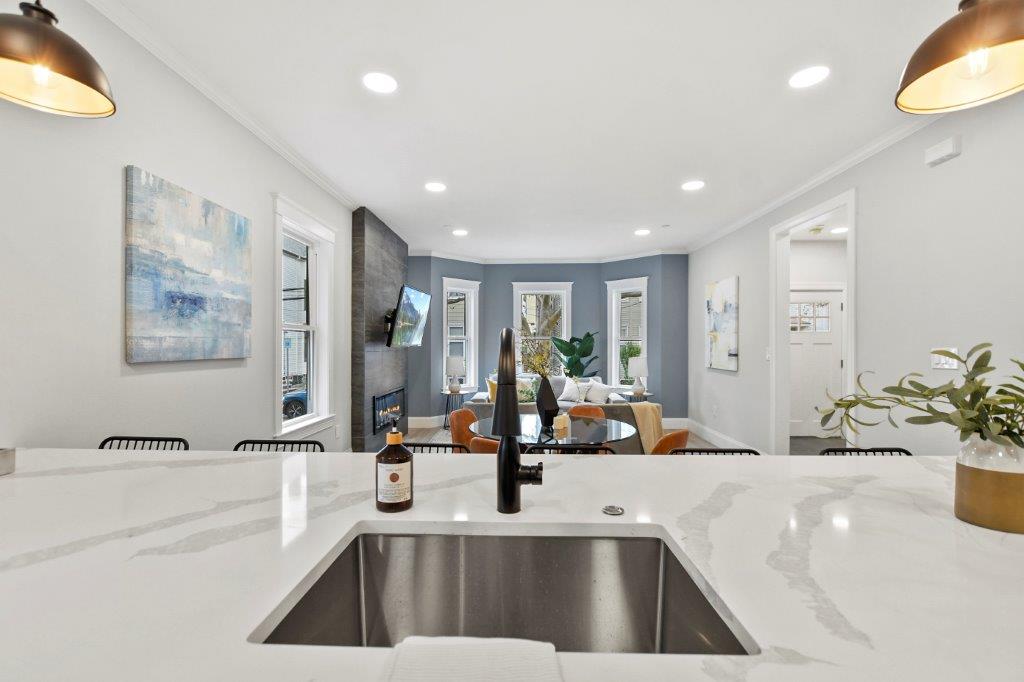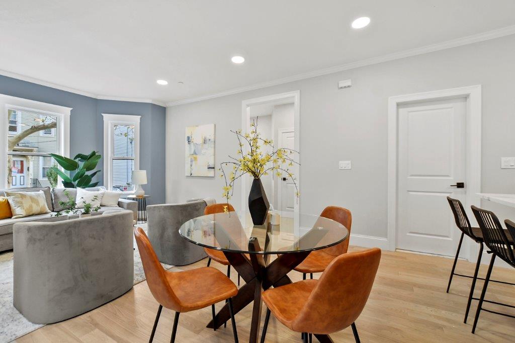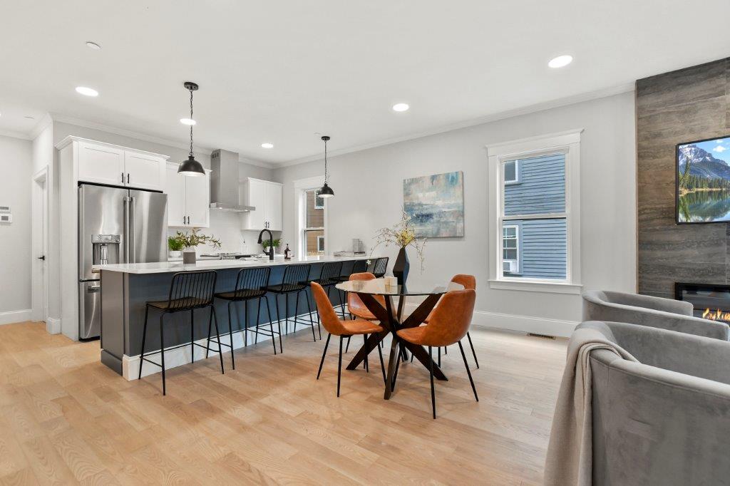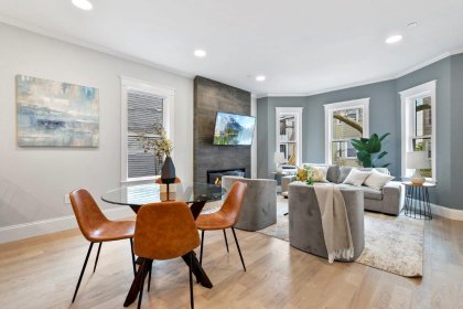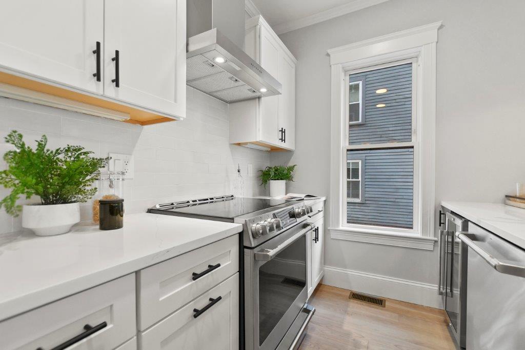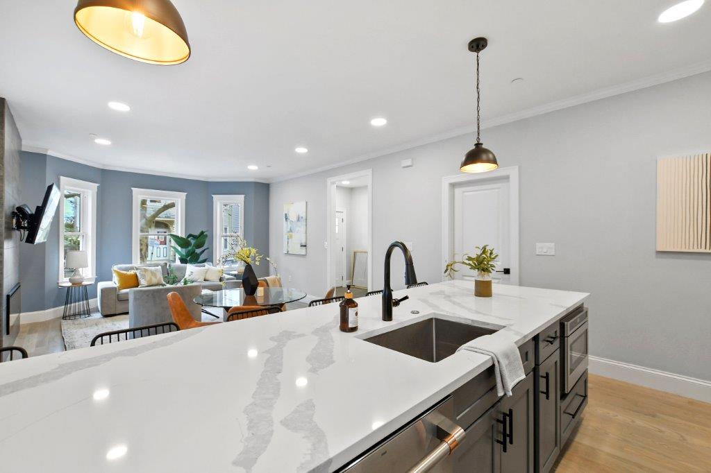 Prepare to be impressed by this fully renovated 2-bed, 2-bath 1st floor condo in Cambridge, MA. This unit has an abundance of natural light & sleek hardwood floors throughout. Upon entry, you'll be greeted by the spacious & sun-filled open-concept floorplan. The living room features a modern electric fireplace & flat screen tv included. The kitchen is nothing short of spectacular, boasting a generous 6-seater island, quartz countertops, GE cafe appliance package, & a wine chiller. There's also a designated dining area, perfect for hosting & entertaining. The primary bedroom is a retreat w/ a walk-in closet & private bath w/ tiled shower stall. 2nd full bath w/ laundry machines included completes the unit. Outside, a common patio area is available for all residents to enjoy. 1 off-street parking spot available. Basement includes a private storage unit for added convenience. Minutes from Kendall Square, downtown Boston & I93. Don't miss the change to make it yours!