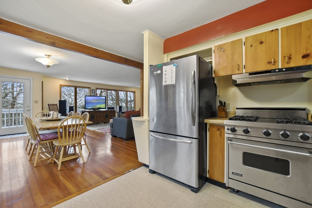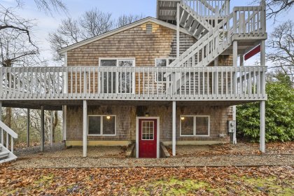 This exceptional 5+bedroom, 2-full bath residence boasts a unique charm that sets it apart. Step into the heart of the home, where an open-concept kitchen & dining area create a warm inviting space. The kitchen is equipped w/ stainless steel appliances & a Viking gas stove that promises gourmet experiences. W/ ample room for entertaining, this space becomes the focal point for social gatherings & celebrations. As you move through the home, the large living room captures your attention w/ its abundance of natural light & the cozy ambiance of a wood-burning stone fireplace. Perfect for creating lasting memories with loved ones or unwinding after a long day. Two bedrooms on this level provide comfort & privacy. Venture downstairs to the lower level, where you'll discover four generously sized bedrooms & another full bath. Great deck space for outdoor entertaining & a great roof top deck w/ peak ocean views!! So close to the beach here, rights to Gunning Point Beach only 1/2 mile away!!