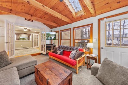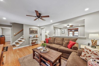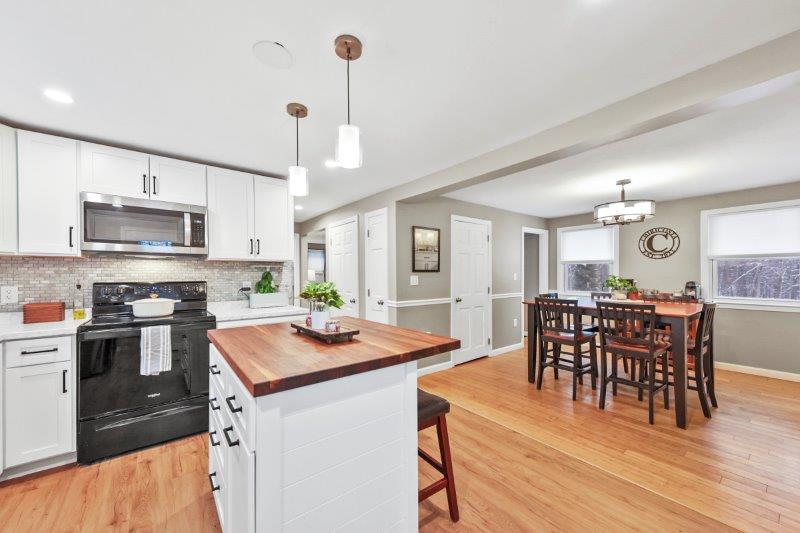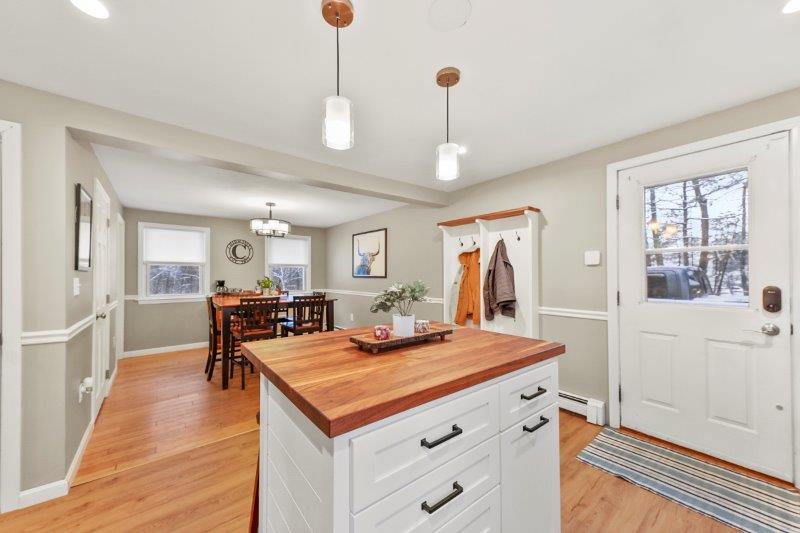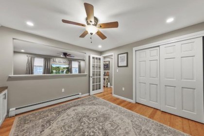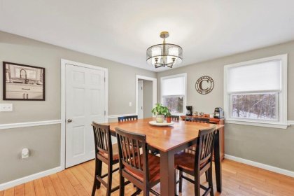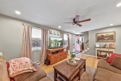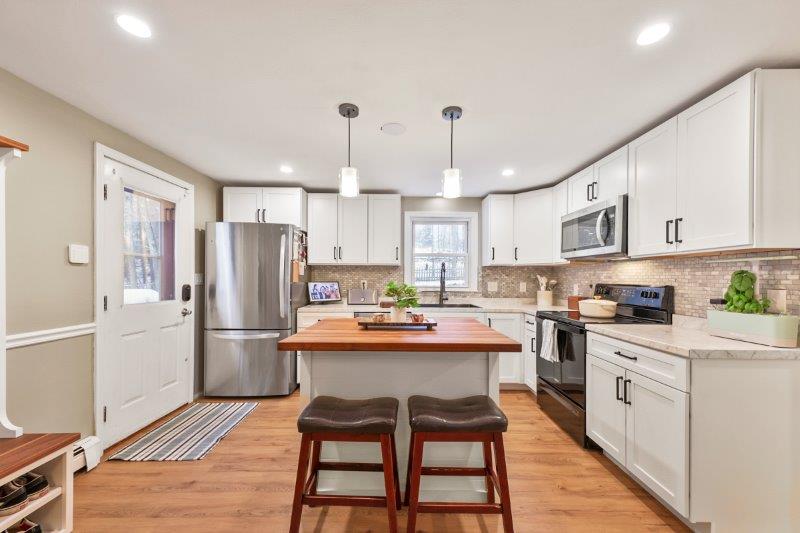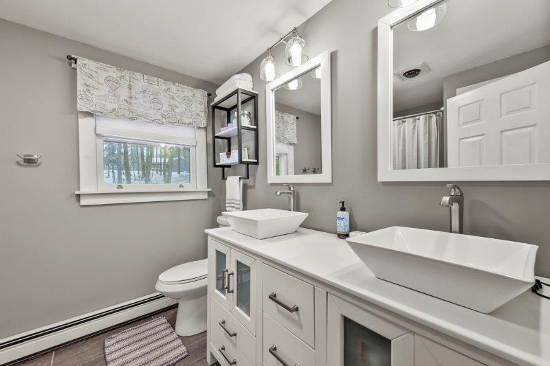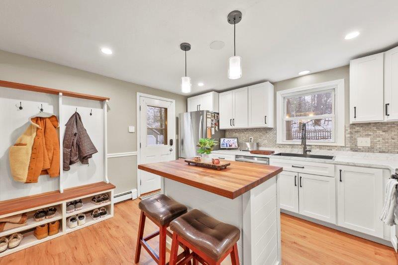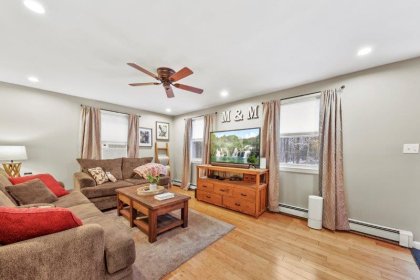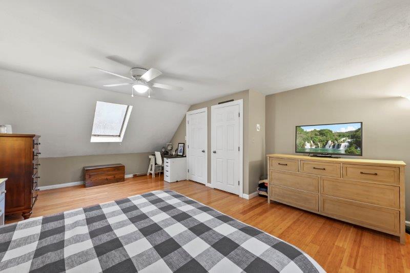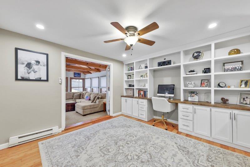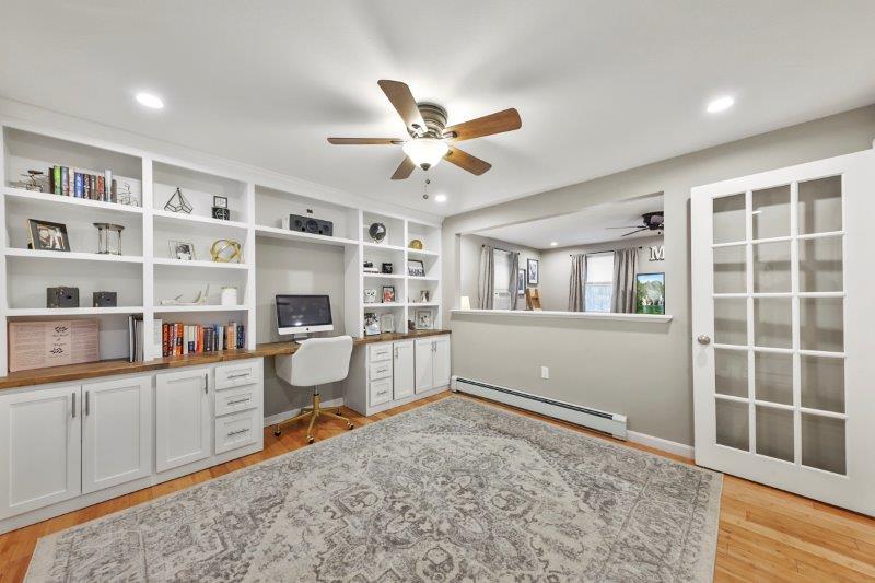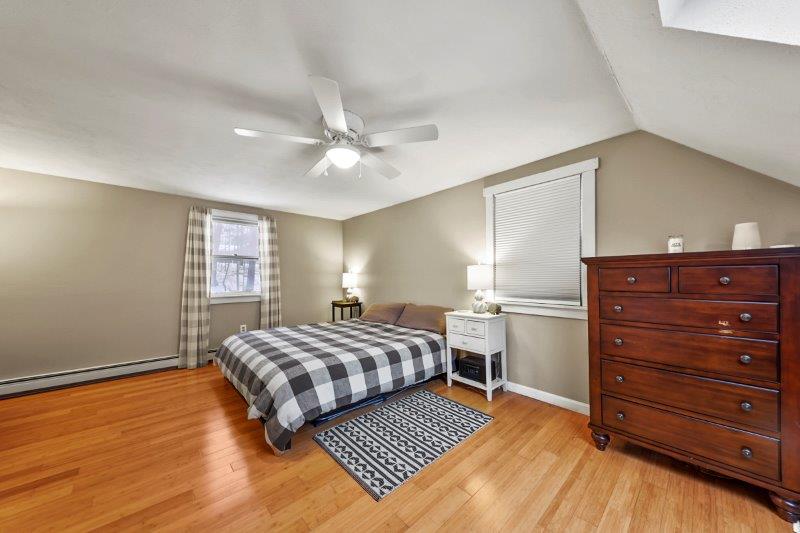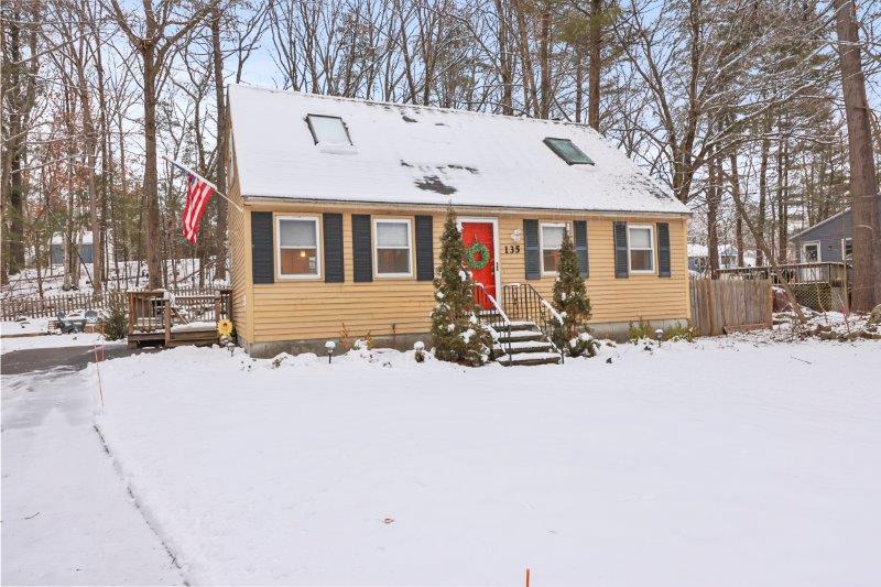 Welcome to this charming 2-bedroom, 2-bathroom home nestled in the heart of Nashua, NH. This quintessential Cape has so much to offer! Enter in through the living room which has hardwood flooring. Adjacent to the living room is a cozy study, complete w/ custom built-ins, making the perfect work space. This leads to the sunroom which boasts vaulted ceilings and a skylight. The kitchen offers beautiful updated cabinetry, SS appliances, & a center island. It connect to the formal dining room which is ideal for entertaining. A full bathroom completes this level. Upstairs, find 2 bedrooms. The spacious primary offers a walk-in closet! There is an additional full bathroom just off the hallway w/ dual vanities & a shower/tub. Basement offers additional living space, w/ a workshop and finished office area. There are washer/dryer hookups for added convenience. Outside has a back deck! Wooded yard for added privacy.