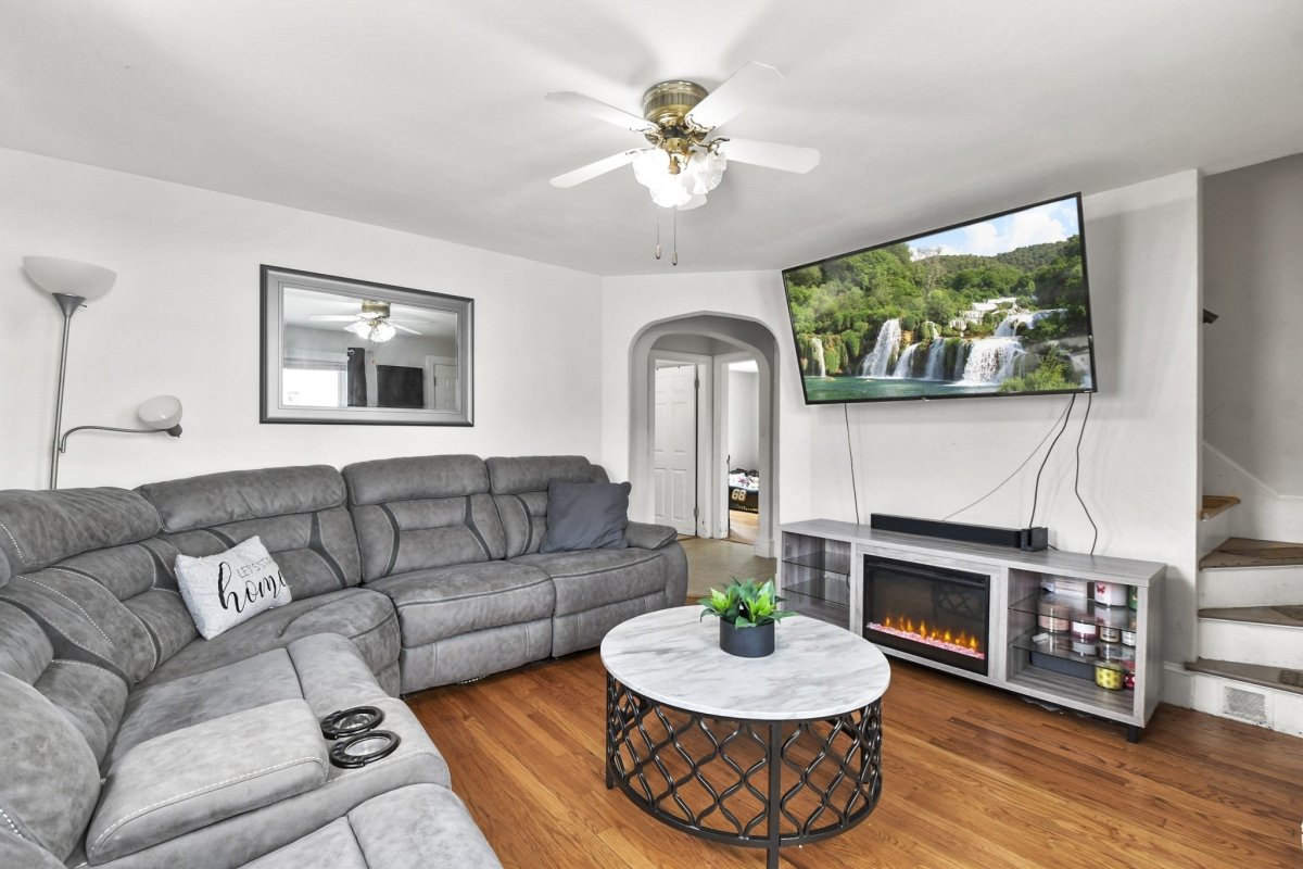 Welcome to this 3 bedroom and 2 bath charming home offers a blend of comfort, convenience, and style, making it an ideal home for families and individuals alike. Upon entering this delightful residence, you're greeted by the warmth of hardwood flooring that flows throughout the living room, creating an inviting ambiance for relaxation and entertainment. The kitchen boasts laminate flooring, providing both durability and style. The Primary bedroom also boasts a full bathroom, providing added convenience and privacy for residents. Partially finished basement for a man cave or family entertainment , Don't miss your chance to make this charming residence your own.