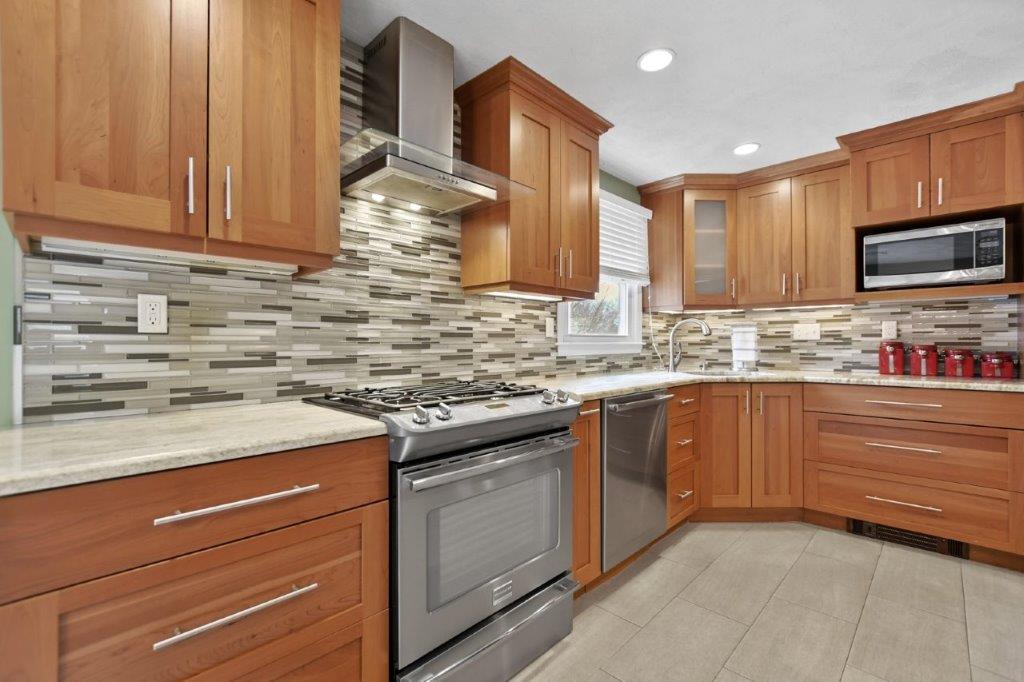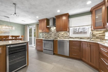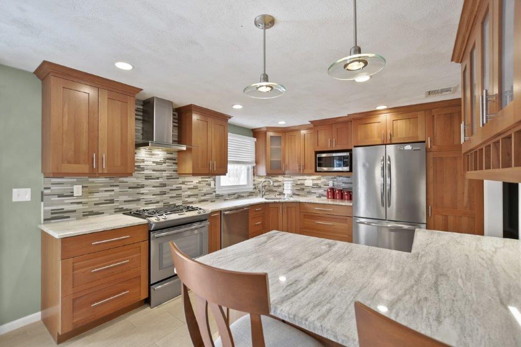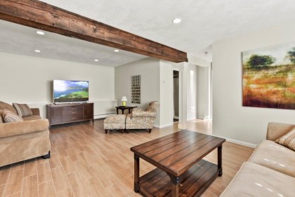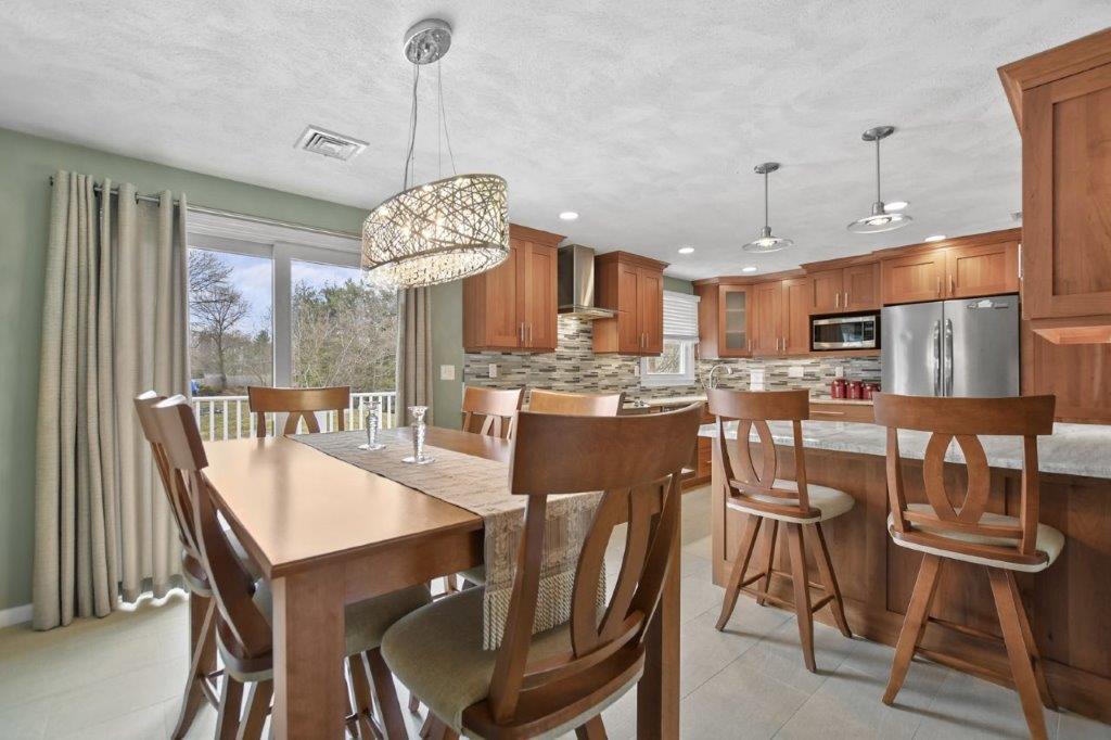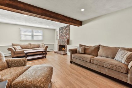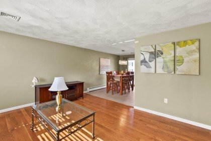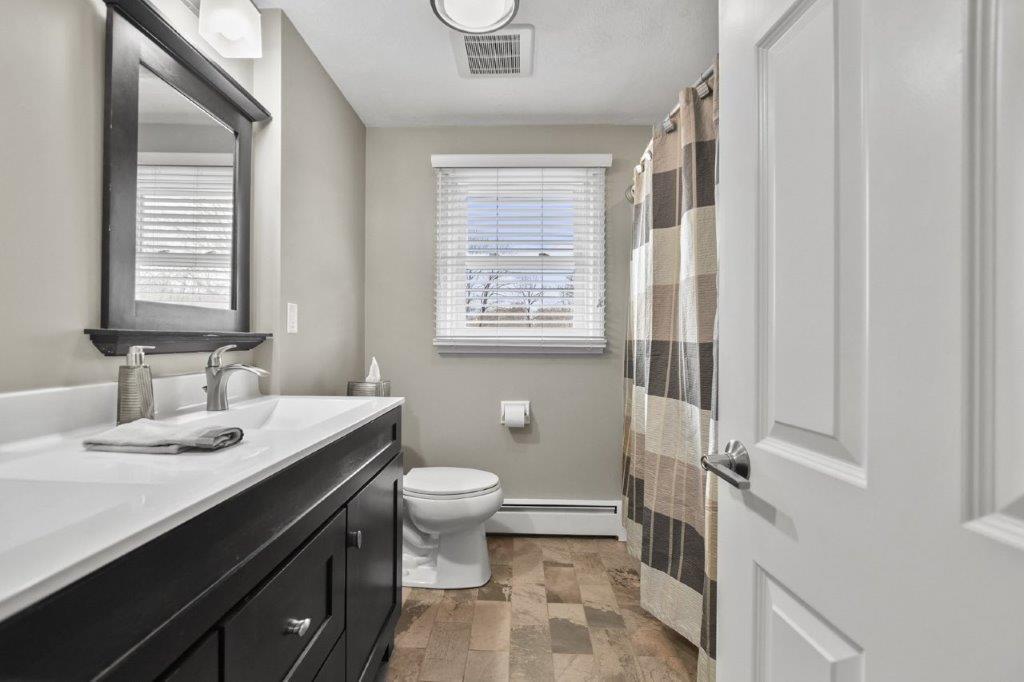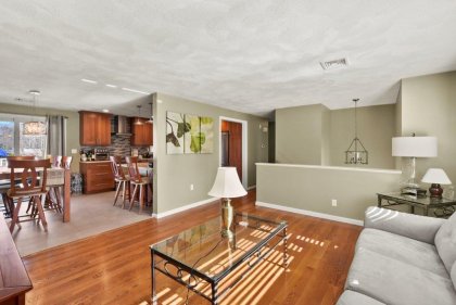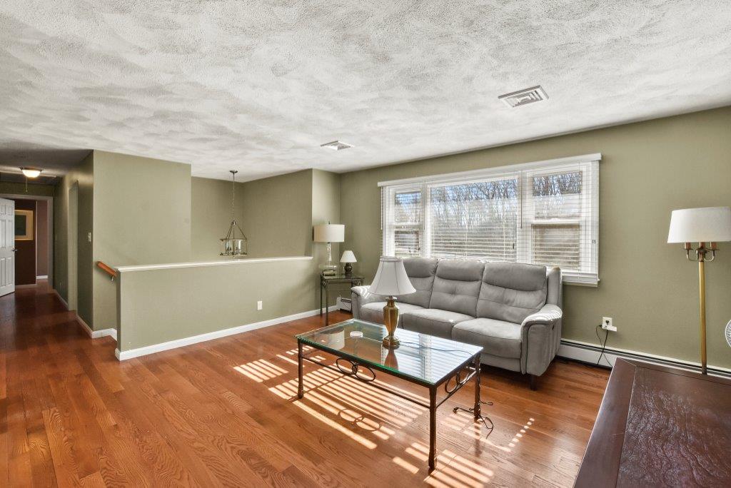 Immaculate 3 bed/2 bath Split Entry awaits! Sun-filled living room, accentuated by hardwood floors, creates a warm & inviting atmosphere. Well-appointed kitchen featuring tiled backsplash, SS appliances, granite countertops & ample cabinet space, making meal prep a joy. Adjacent dining area offers slider access to the low-maintenance composite deck, ideal for outdoor entertaining! 3 generously sized bedrooms provide plenty of closet space, while a full updated bath w/ double vanity boasts modern fixtures & finishes. The lower level beckons w/ a beamed ceiling family room, complete w/ recessed lighting & a cozy fireplace. Discover flexible bonus space ideal for a gym or office, offering endless possibilities to suit your lifestyle needs. Laundry room & additional full bath add convenience to this already impressive home. Completing the package is a one-car garage. Amazing location w/ easy access to I93, 128, restaurants, shops, & entertainment. Don't miss out on this one - a must see!