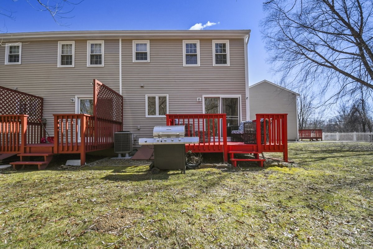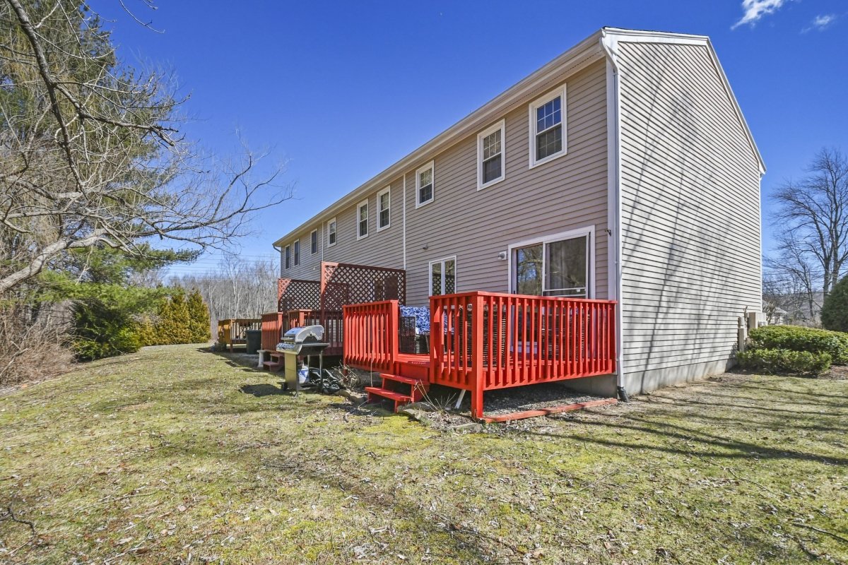 Welcome home! This highly sought-after end unit condo boasts 2 bedrooms and 1.5 baths, offering the perfect blend of comfort and convenience. As you enter into the inviting living room, you're greeted by the warmth of hardwood floors. Flowing seamlessly from the living room is the kitchen/dining area, adorned with hardwood floors and a slider that leads you to your own private back deck. Imagine sipping your morning coffee in this tranquil outdoor space. The convenience of a first-floor half bath adds practicality to the layout, while upstairs, you'll discover two spacious bedrooms and a full bath. Located close to shopping, restaurants, and more! Don't miss out on the opportunity to start creating new memories today!