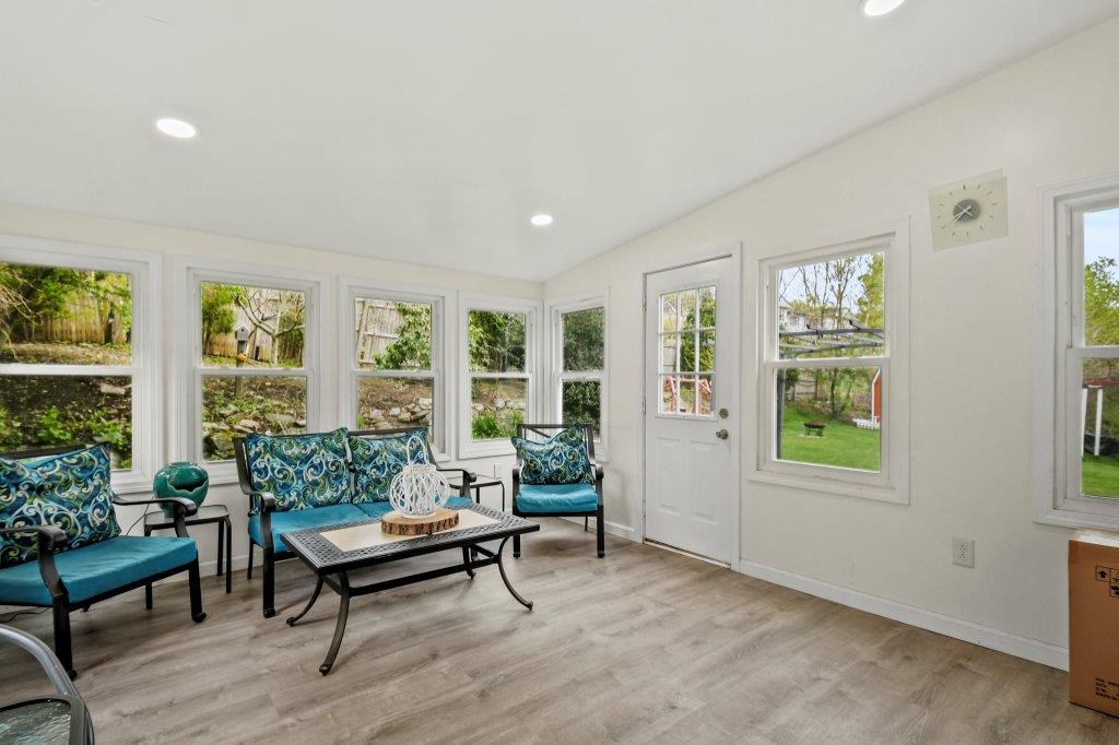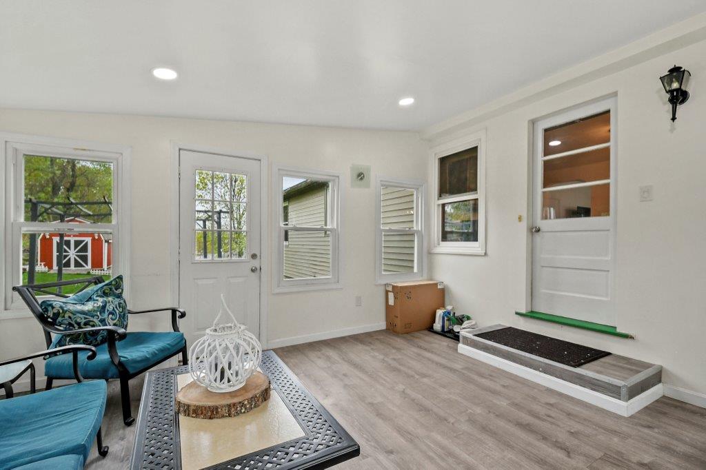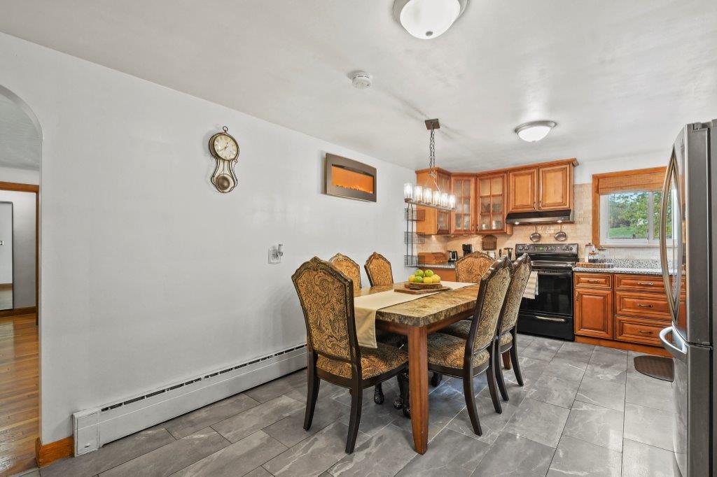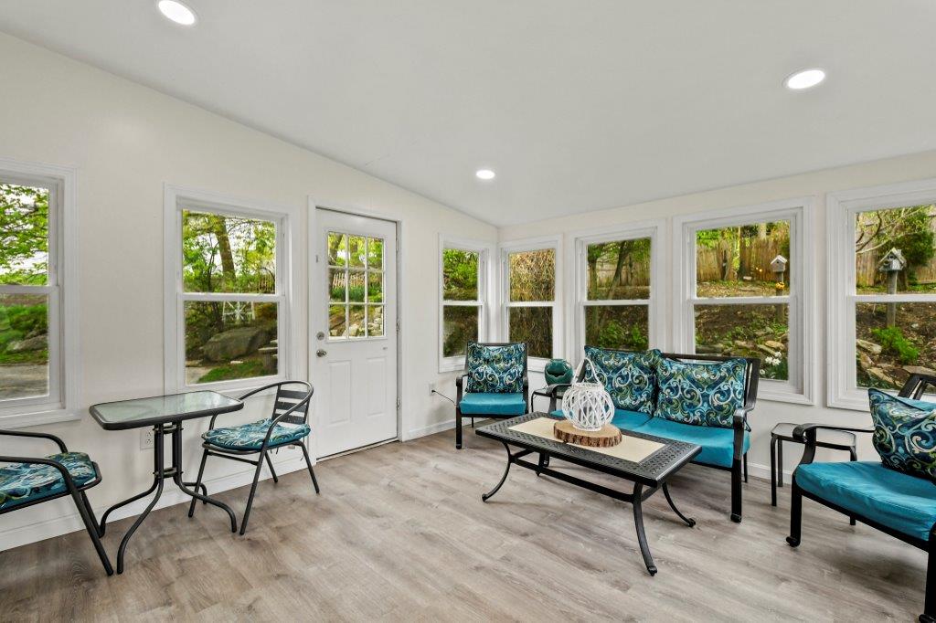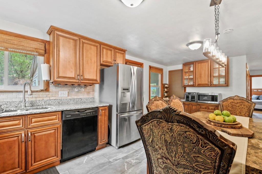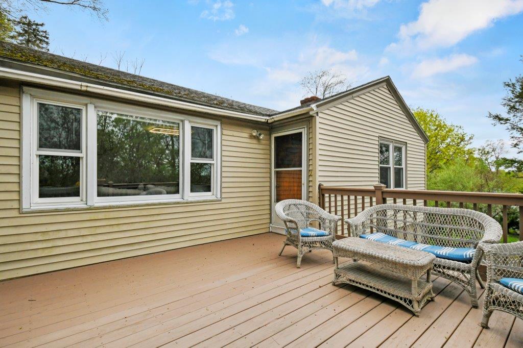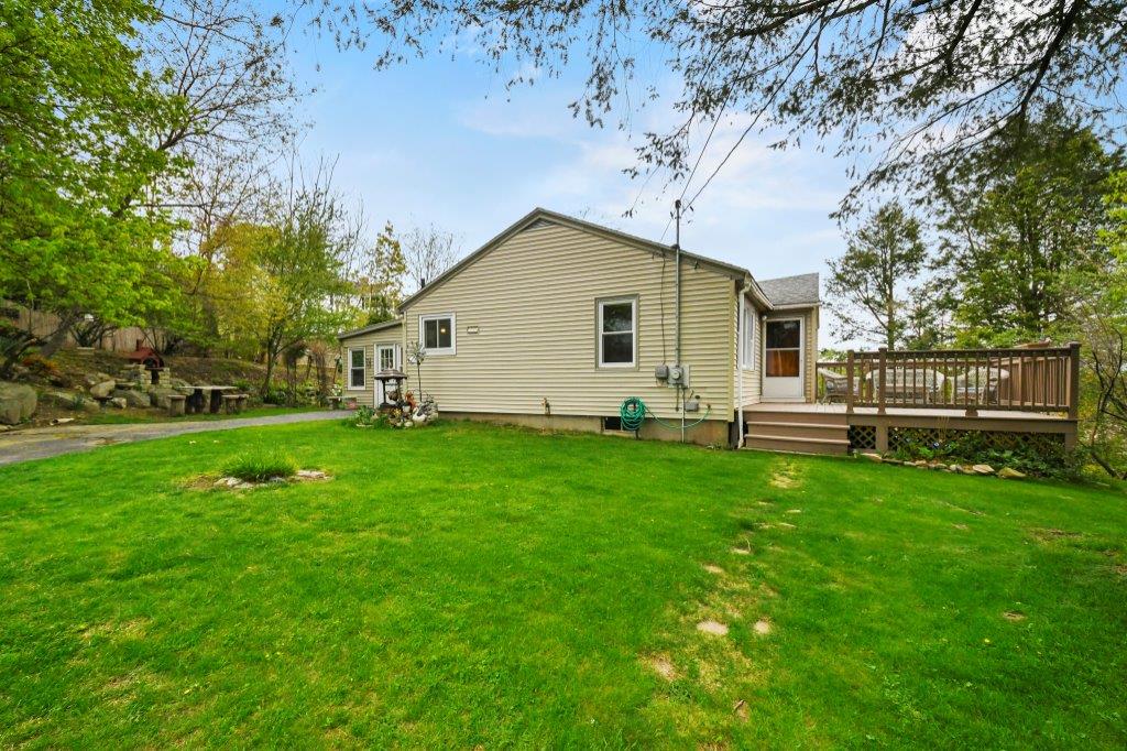 Opportunity knocks! This charming 3-bed, 1.5-bath ranch is tucked away on a tranquil road with convenient highway access. Enter into the inviting sunroom, perfect for savoring a cool drink while diving into a captivating summer read. The fully applianced dine-in kitchen boasts beautiful granite countertops, abundant cabinet space and stylish backsplash. Relax in the sun-drenched living room, adorned with hardwood flooring and a large picturesque window framing the serene surroundings. Journey down the hall to discover three well-appointed bedrooms and a full bath with a linen closet. And there's more! The spacious finished lower level serves as a wonderful spot for all to gather with a charming fireplace, bonus half bath and laundry room. Unwind on your wonderful young deck and private back yard featuring lovely gardens and your very own wood pizza oven! This is the perfect home to immerse yourself in the soothing sounds of nature, minutes to the trails of Green Hill Golf Course.