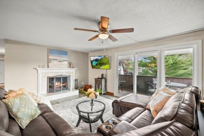 Updated 2 bed, 1.5 bath condo in a prime location! This unit boasts an open floor plan, large bedrooms, incredible closet space, oversized bathrooms, a beautiful fireplace, and sliding glass doors to a covered deck with courtyard views. Enjoy modern upgrades include a brand new bath tub with a hand held rain shower, new windows, granite countertops, and stainless steel appliances. The lower level is finished with tremendous storage space, 2 rooms, brand new carpet and fresh paint. Community features include 2 assigned parking spots, and in-ground pool with a clubhouse. Experience the best of condo living in this updated and convenient property!