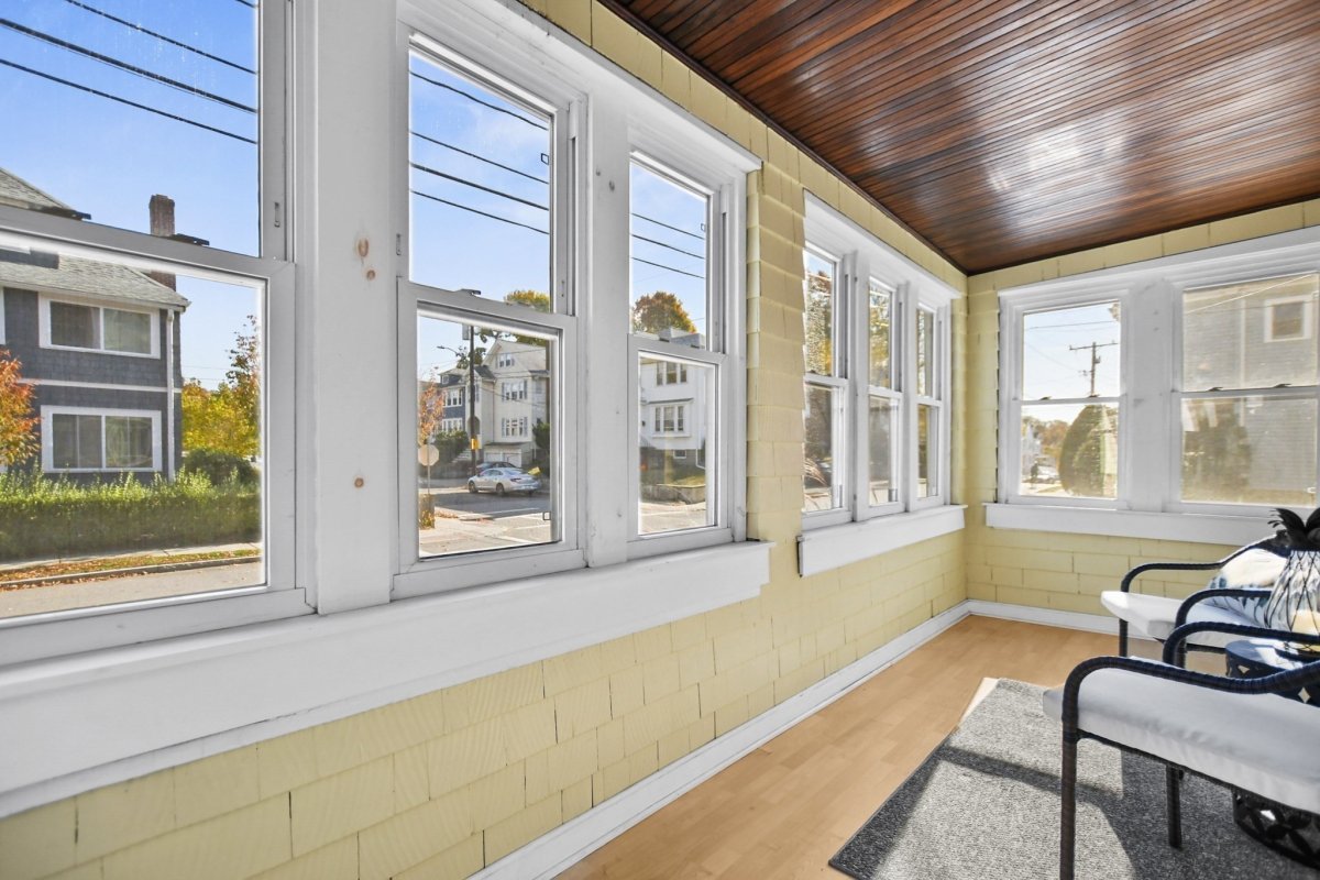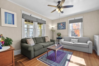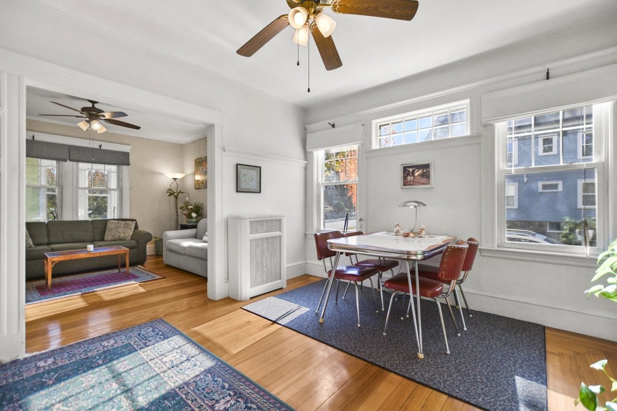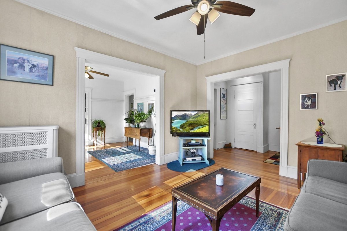Awesome Watertown Location for this well maintained & loved 1st level, 2 bedroom,1 bath condo!!! Corner lot allows loads of natural light throughout this unit with beautiful hardwood flooring. Walk through the foyer into the living room with open floor plan into the dining area with built in cabinet. Enter the bright & cozy kitchen w/vintage sink & cabinets with an attached pantry area for your storage needs. Washer & dryer also included are located in the kitchen area for your convenience. New ceiling light/fans installed, 2024 Hot water heater install. Large right side section of unfinished basement designated for you for additional storage with interior and bulkhead access. Front and back private enclosed 3 season porches and appointed yard area to enjoy your surroundings in this quiet neighborhood that is in close proximity to all your shopping needs, restaurants, t-station, public transportation and Mass Pike without the downtown noise.