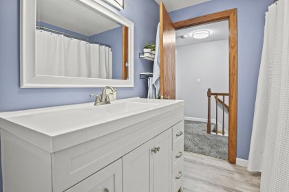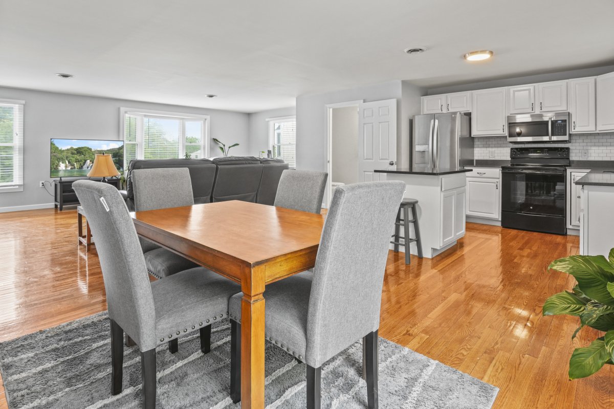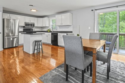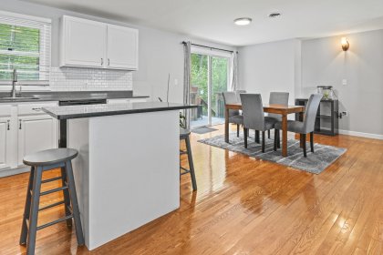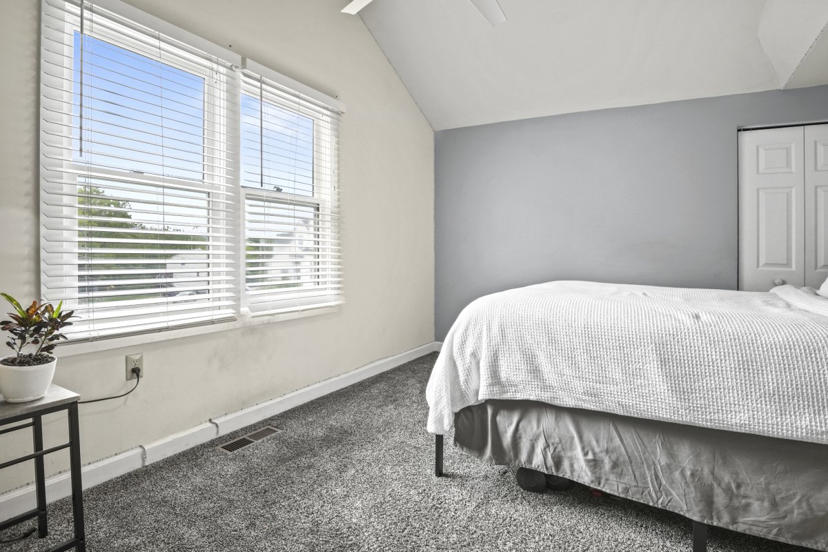 Welcome to this 2 bedroom, 1.5 bath half-duplex style townhome offering a bright, open layout w/ gleaming HW floors throughout the main level. The spacious living room features a bay window that fills the space w/ natural light. The kitchen is equipped with solid countertops, a center island w/ breakfast bar & a dining area w/ sliders that lead to the deck—ideal for relaxing or entertaining. A sleek, updated half bath completes the main floor. Upstairs, you'll find two generously sized, carpeted bedrooms, including a primary w/ walk-in closet & a beautifully updated full bath w/ convenient laundry in the hallway. The finished lower level includes a versatile rec room w/ vinyl flooring, chair rail, French door to a tile foyer, ample storage, garage access & sliders to a backyard w/ firepit. Includes a 2-car driveway and 1-car garage. Conveniently located near Routes 190 and 2 for easy commuting. Located in the Johnny Appleseed school district. Schedule your showing today!