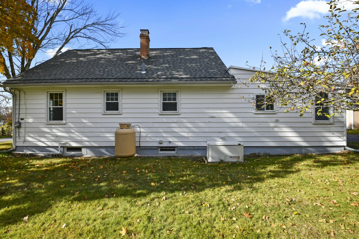 New England 4 bed Cape with open concept kitchen, living room and dining area. Wood flooring throughout. The living room has a pellet stove to keep you nice and toasty on those chilly nights. You will find 2 beds and the full bath on the first floor and 2 more bedrooms on the second. Newer slider (2018) off the kitchen leads to a covered porch to sit out and enjoy the quaint backyard. You will not have any worries if you loose power thanks to the whole house generator powered by propane. New roof in 2019, shed 2018. This home is set on a quiet street, but yet conveniently located to all desired amenities. Come see this one in person to really appreciate the value and potential.