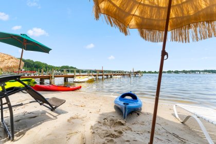 Unicorns do exist! The combination of deep and water and sand beach is a rare find indeed. Bring your sailboat or motor yacht to the dock with 10' MLW, mix a drink at the waterside tiki bar, wiggle your toes in the sand, click your heels together and say, "there's no place like home!" Located on the Great Wicomico River, the Chesapeake Bay is a short trip away. There are mulitple restaurants accessible by boat. There is great fishing right off the dock. The home features commanding water views, an open floor plan and updated kitchen and baths. The kitchen is open to the living room and dining area. The large kitchen features an island with bar seating, a pennisula with bar seating, prep sink, granite counters, coffee bar and stainless steel appliances. The primary bedroom features water views, a private deck and attached bath with dual vanities and tub with tile surround. There is a fantastic guest suite with a private bath and living area. The home is completed by an additional guest bedroom and full guest bath, office, laundry room and attached 2 car garage. The tiki bar has power and water. By car it is a short drive to amenities in Kilmarnock, Irvington and White Stone.