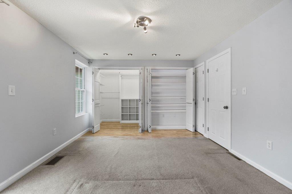 Separate laundry and powder bath complete the main level. Primary bedroom is oversized with double closets with custom inserts and Juliette balcony to bring the