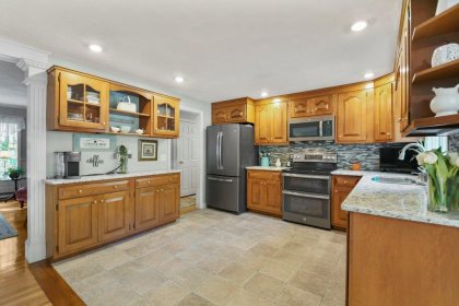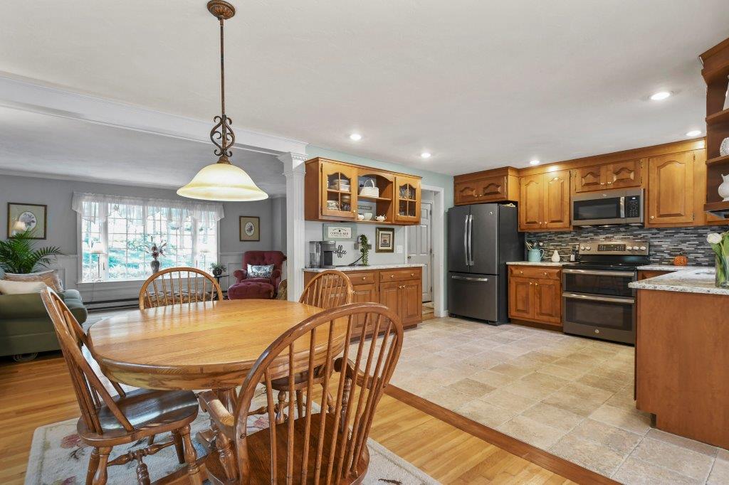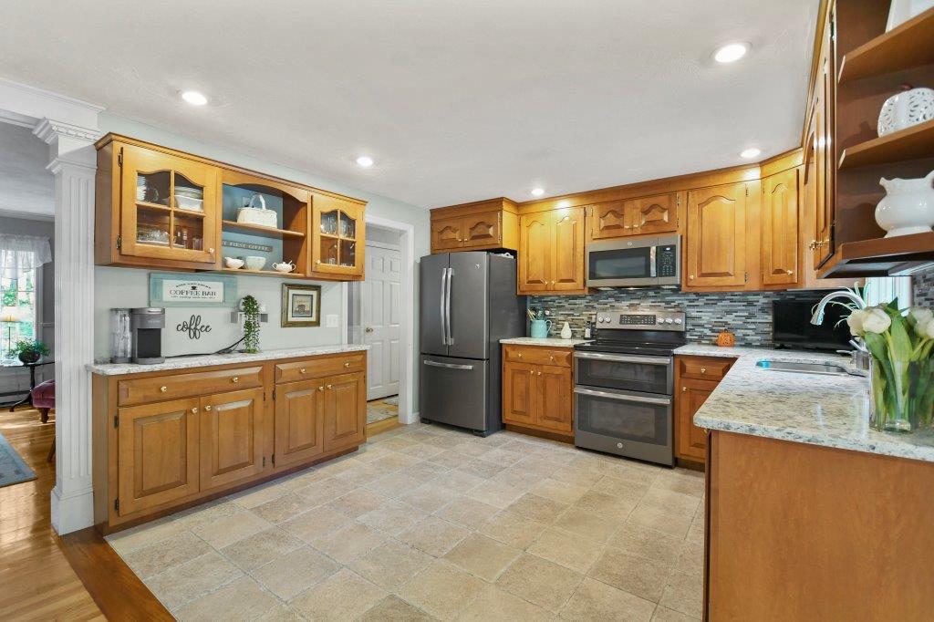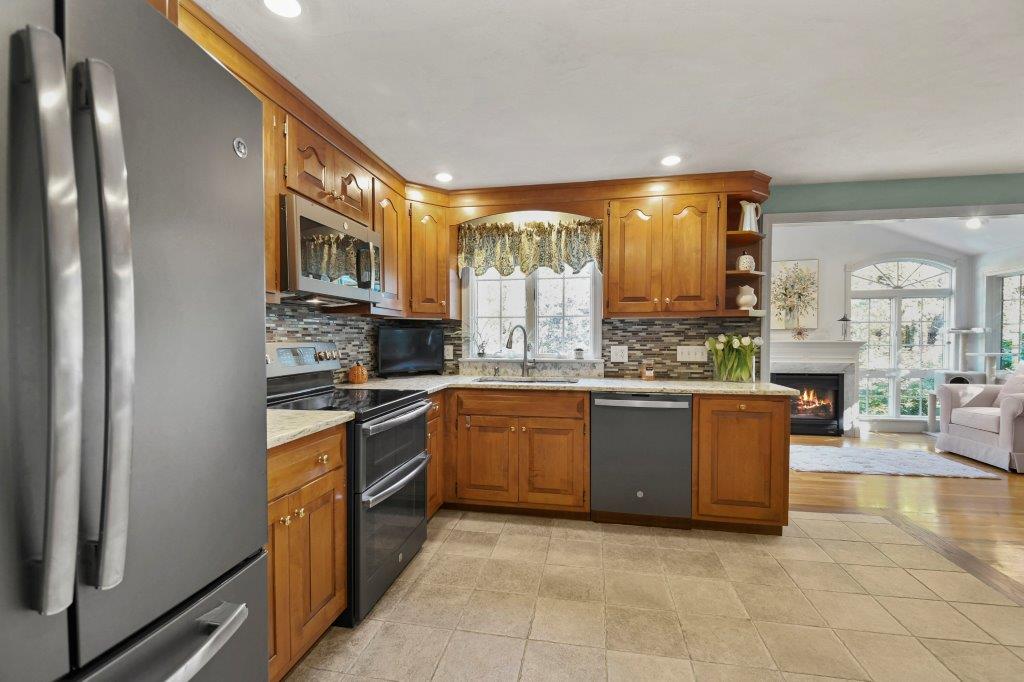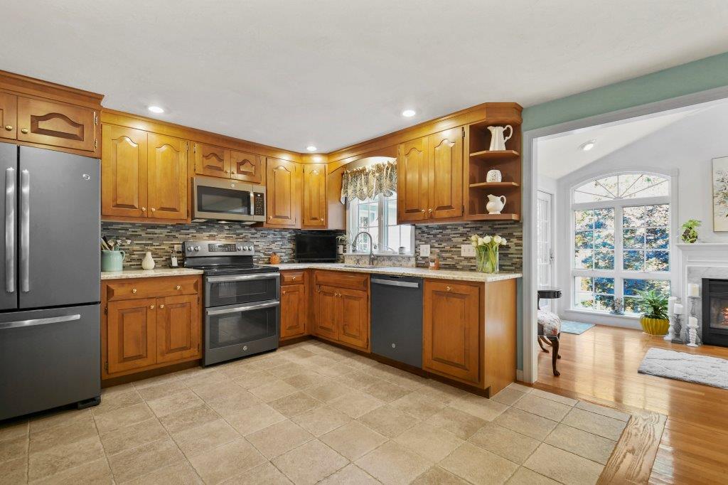 Nestled in the town of Shrewsbury, this beautiful split-entry home offers a perfect blend of elegance & functionality. Inside, you will be welcomed by a spacious living room w/ gleaming HW floors & a bay window that floods the room w/ natural light. The open-concept kitchen is a culinary enthusiast's dream, featuring S/S appliances, a stylish tile backsplash, & exquisite Corian countertops. One highlight of this home is the stunning sunroom, where you can cozy up by the fireplace & enjoy the picturesque views. The 1st floor also includes 3 good-sized bedrooms & two full baths. The lower level of this home has been thoughtfully finished to include a spacious family rm, separate laundry rm, a 3rd bath, & a versatile bonus rm. An enclosed porch provides a cozy retreat to enjoy the changing seasons. Outside, you'll discover a backyard oasis that includes a shed for your hobbies or storage, a back deck, stone patio, & a sprinkler system to keep your yard lush & green. Welcome Home!