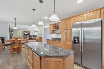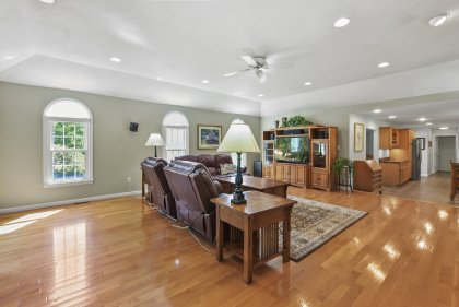 Meticulously designed and thoughtfully appointed, this Norton gem promises a lifestyle of comfort and style. Step into the spacious living room, where a cozy fireplace and gleaming hardwood floors create an inviting atmosphere, perfect for relaxation. The kitchen boasts stone and ceramic tile flooring, an expansive kitchen island, and recessed lighting. The primary bedroom is a perfect retreat, featuring a generous walk-in closet and a pristine full bathroom. The finished basement provides many possibilities, compete with a bar and wine cellar! This home offers lots of space for entertaining, including the large back yard, perfect for summer cookouts! Don't miss the opportunity to make this exceptional property your forever home.
