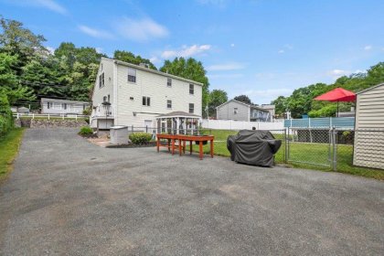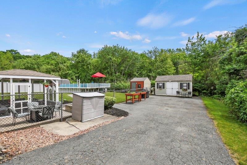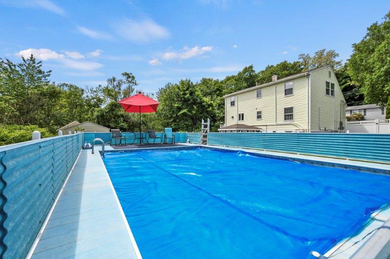 Don't miss this charming 4bed 2bath cape! Discover a spacious layout w/ large windows gleaming w/ natural light, showcasing the HW flooring throughout. The kitchen features a dining area, SS appliances & tons of cabinet space. Entertain guests in the formal dining room, an inviting atmosphere for gatherings & special occasions. Convenience meets versatility with a bedroom on the first floor, perfect for guests or a home office. Upstairs, relax in your expansive primary bdrm with a walk-in closet. Two additional bedrooms provide ample space for rest and relaxation, and a full updated bath completes the level. Endless possibilities in the finished basement, offering a cozy family room complemented by a wood stove. Beat the summer heat in the large above-ground pool with a convenient sitting area, ideal for lounging and soaking up the sun or stay in the shade in the gazebo. Additional storage needs are met with two storage sheds. Make this your forever home-schedule your showing today!
