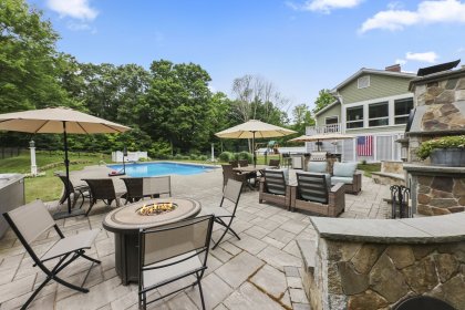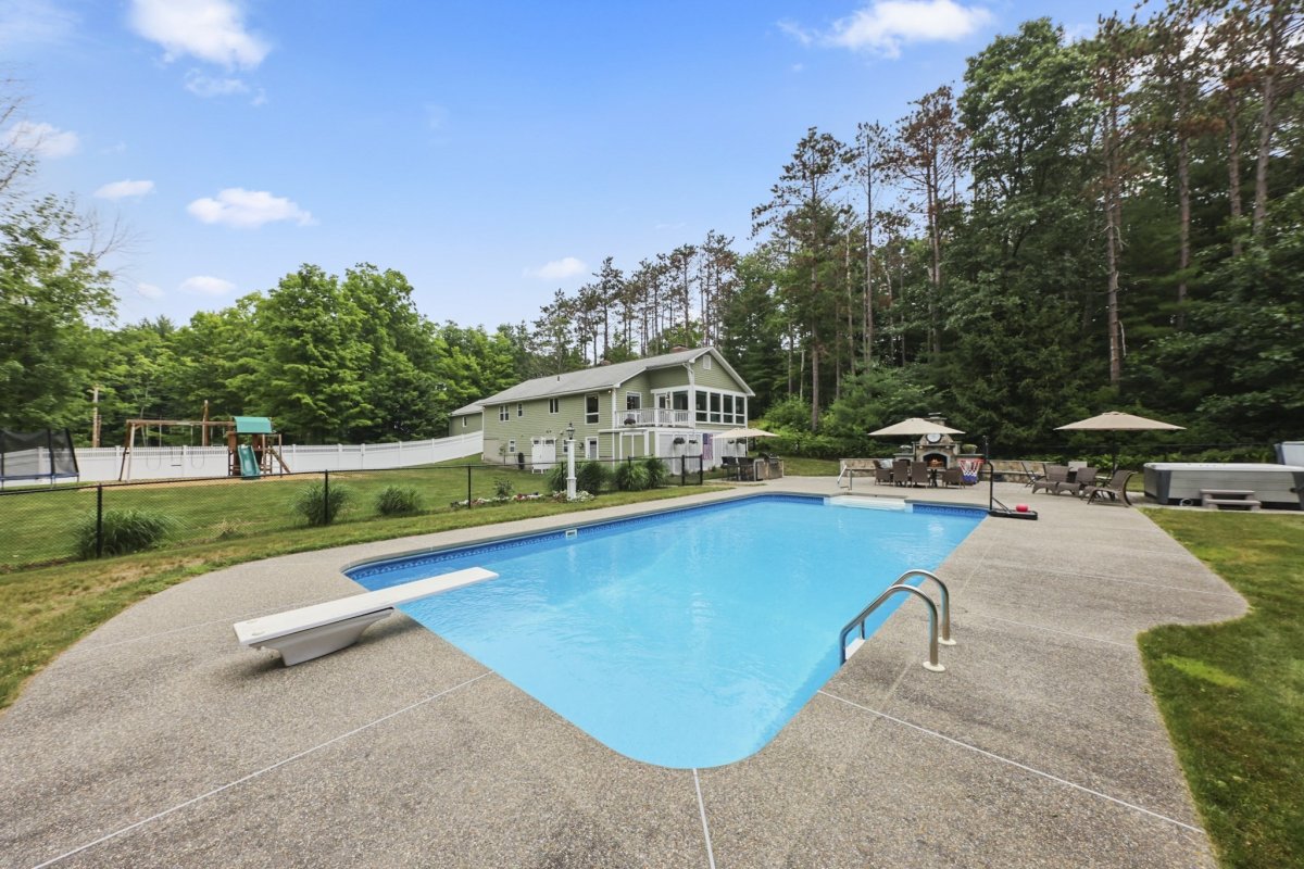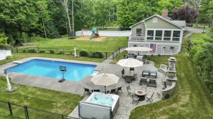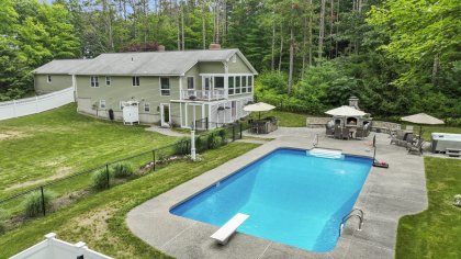 The seller reserves the right to accept an offer prior to deadline. Welcome to your dream home on over 4 acres of private land! This stunning property features a 20 x 40 inground heated pool, outdoor shower, gorgeous fireplace, built-in grill area, spacious patio, deck, and hot tub—perfect for outdoor living. The open-concept first floor boasts a chef's kitchen featuring double wall ovens, a gorgeous island, and a gas cooktop with a downdraft system. The first floor also offers 3 spacious bedrooms, 2 bathrooms, a dining room, and a heated sunroom with views of your private backyard. The partially finished walk-out basement expands your living space with a second kitchen, a versatile bonus room, and an additional half-bathroom, ideal for entertaining or guest accommodation. Don’t miss the chance to own this exceptional property, combining open-concept indoor and outdoor living in a serene, private setting. Your perfect home awaits!