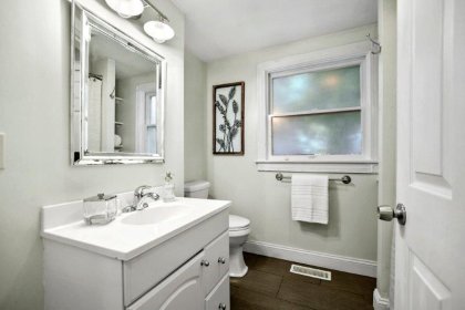 updated eat in kitchen. In addition to the full bathroom, the first floor offers a comfortable bedroom, perfect for guests or a home office. Upstairs, you'll find a spacious