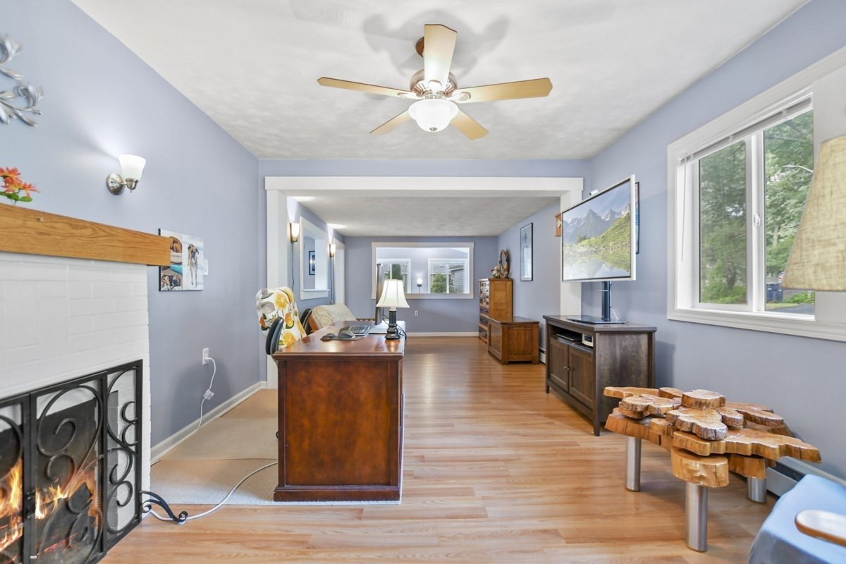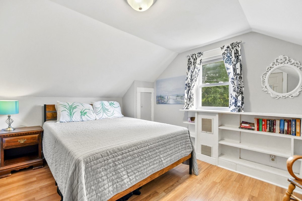 Nestled in Marlborough with picturesque views of Fort Meadow Reservoir, this delightful Cape home awaits new owners to create new memories! The main level welcomes you with a formal living room, where a fireplace invites cozy gatherings, and a formal dining room is enhanced by custom built-ins perfect for showcasing your finest treasures. A sunlit family room featuring a pellet stove and skylights offers a perfect space for relaxation. The well-appointed kitchen with a pantry and ample cabinetry caters to all your culinary needs. The first-floor main bedroom is a true retreat, featuring a custom walk-in closet. Upstairs, two generously sized bedrooms with ample closet space provide comfort and privacy. Outdoors, a sunny patio and a garden area are perfect for outdoor enjoyment, complemented by a convenient garage. As a Fort Meadow Reservoir Lake Association member, you'll enjoy exclusive access to two private beaches and a clubhouse to enjoy the summer!