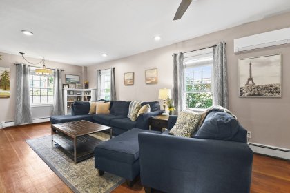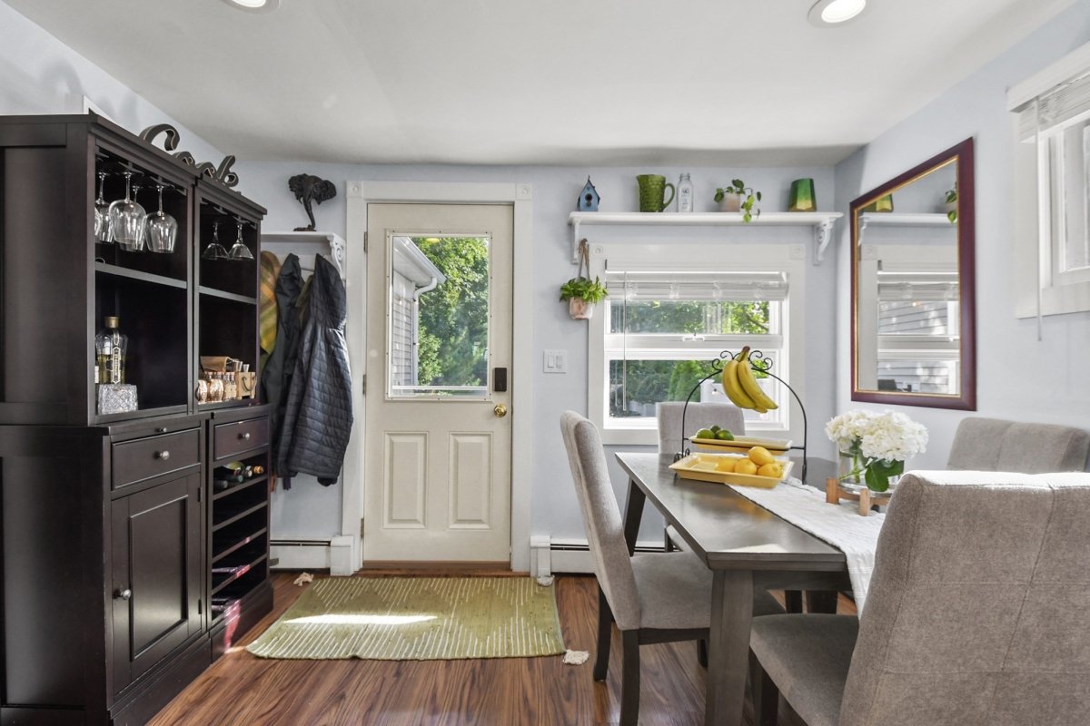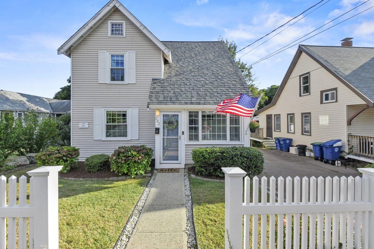 282 Pond St, urban convenience with your own suburban oasis, that you won't want to miss! A gorgeous home full of natural light, many upgrades, and nothing left to do but move in. The living room is inviting and cozy, the perfect place to relax. A bright eat-in kitchen complete with white cabinets, exit out to the back deck from here. This deck is made for entertaining, space for multiple sitting areas, a grill, fire pit, TV to watch sports, whatever you could dream of! The yard has a new fence and a shed. Upstairs the primary bedroom boasts a cathedral ceiling, beams, walk-in closet with custom shelving and en-suite bathroom. Updated bathrooms, a 3 month old roof, Nest thermostat, laundry in the basement. Great location, close to Sunset Lake, Braintree Municipal Golf Course, and the Braintree Station 2 miles away with access to the commuter rail, red line, and bus lines. The Peter & Mary Moore house, a full historical record by the Braintree Historical Society, no restrictions.