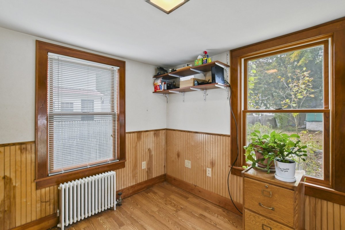 A charming home perfectly situated in a quiet sought after neighborhood. This delightful property is ideal for a starter home or someone looking to downsize to one level living with one large bedroom, living room, dining room & kitchen. Plus a bonus room perfect for a home office or cozy reading nook that steps out to a12 x 16 deck. Enjoy morning coffee or host gatherings overlooking the quarter acre backyard. There's even a large enclosed front porch for those cool evenings. With it's inviting atmosphere and convenient location, this bungalow is a fantastic opportunity to settle down in a friendly community that you can call home.