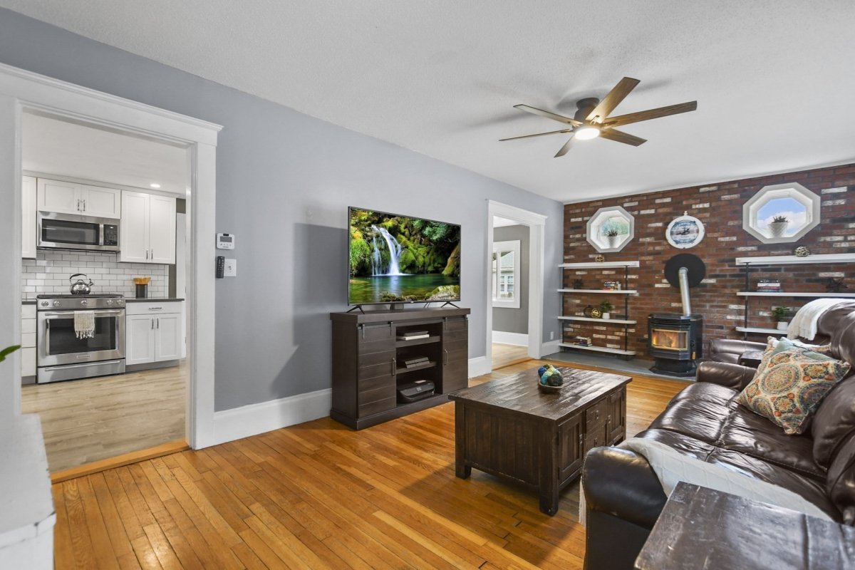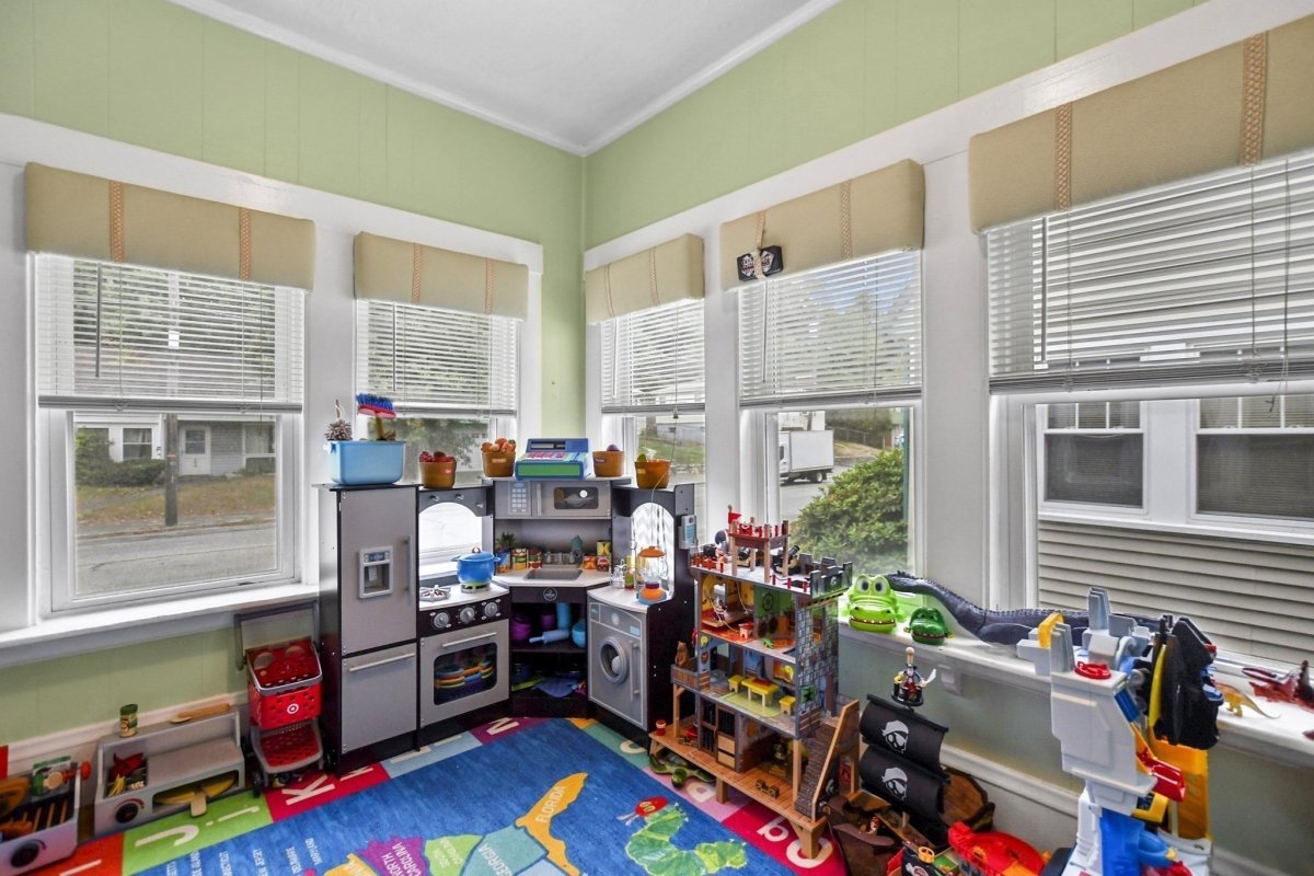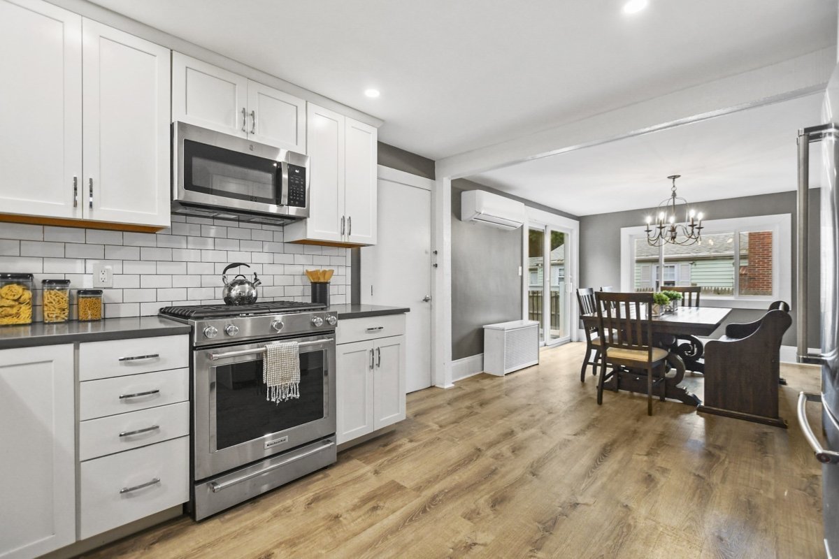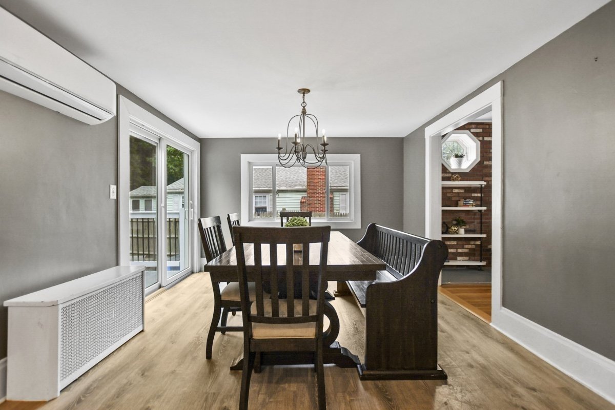 This stunning 3 bed, 1.5 bath colonial is the perfect blend of modern upgrades & timeless charm! Head into the inviting living room, complete with hardwood floors & a cozy pellet stove for that extra touch of warmth & ambiance. The fully renovated kitchen is a showstopper, boasting quartz countertops, sleek stainless-steel appliances, new cabinetry, and gorgeous vinyl flooring! The dining room flows effortlessly from the kitchen, and the sliding glass doors lead to your fenced-in yard with a patio, perfect for outdoor gatherings. Finishing out the first level is your 1/2 bath & bonus room currently being used as a playroom. Upstairs, the primary bedroom and 2 additional sunlit bedrooms offer plenty of space, large closets, and a beautifully updated full bath. With 5 year young siding, roof & energy-efficient mini splits, this home has it all. Don’t miss out on this beautifully refreshed gem!