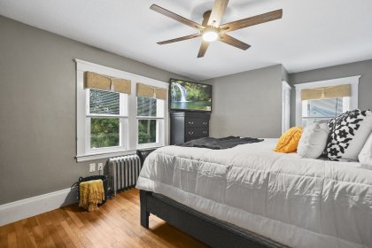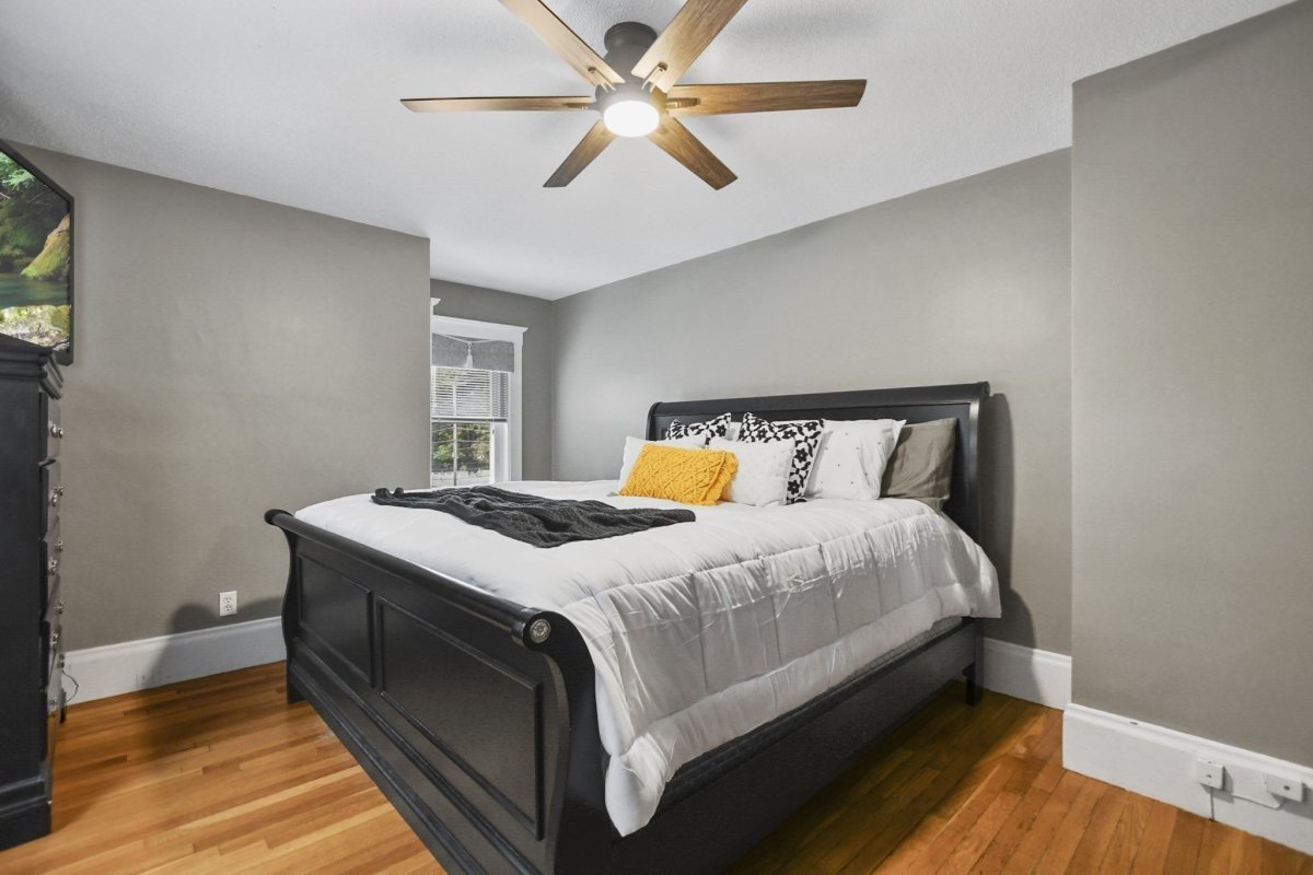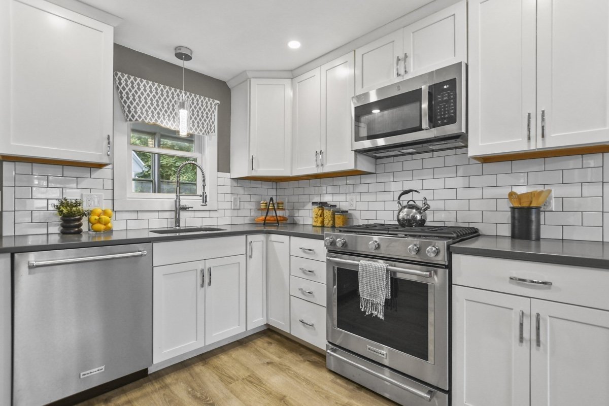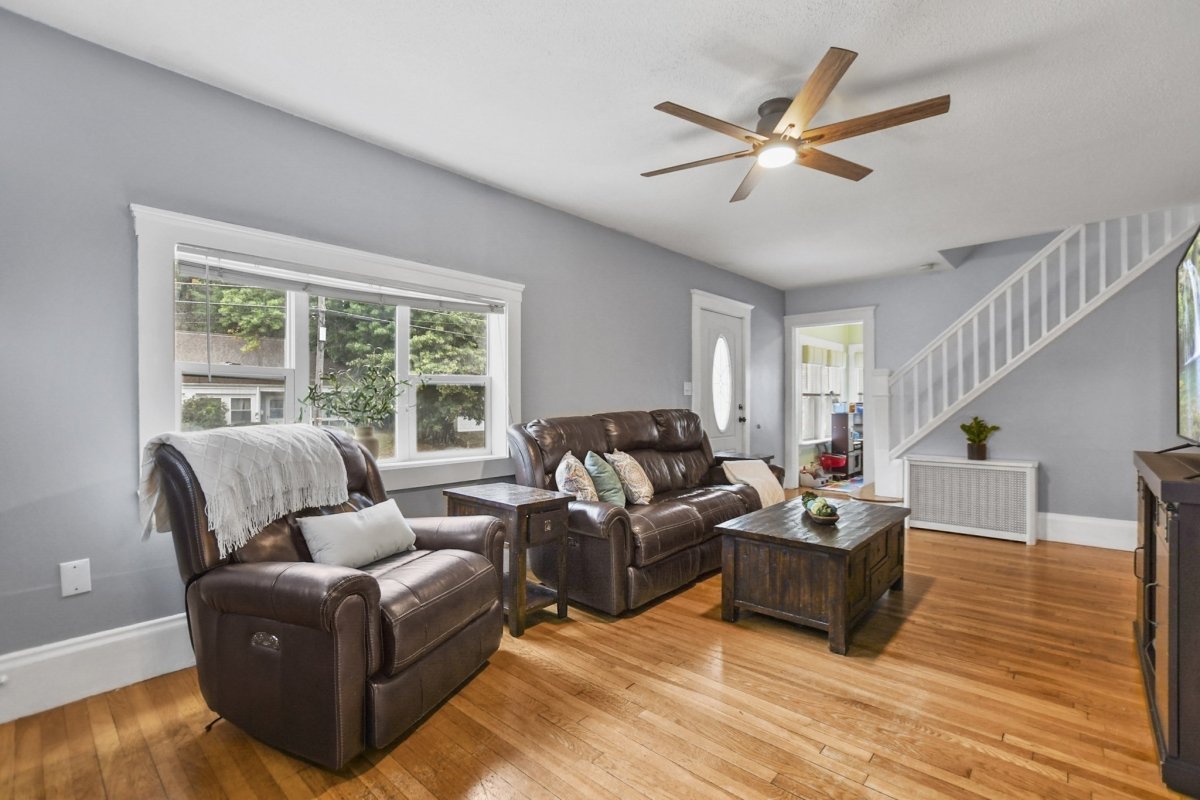 This stunning 3 bed, 1.5 bath colonial is the perfect blend of modern upgrades & timeless charm! Head into the inviting living room, complete with hardwood floors & a cozy pellet stove for that extra touch of warmth & ambiance. The fully renovated kitchen is a showstopper, boasting quartz countertops, sleek stainless-steel appliances, new cabinetry, and gorgeous vinyl flooring! The dining room flows effortlessly from the kitchen, and the sliding glass doors lead to your fenced-in yard with a patio, perfect for outdoor gatherings. Finishing out the first level is your 1/2 bath & bonus room currently being used as a playroom. Upstairs, the primary bedroom and 2 additional sunlit bedrooms offer plenty of space, large closets, and a beautifully updated full bath. With 5 year young siding, roof & energy-efficient mini splits, this home has it all. Don’t miss out on this beautifully refreshed gem!