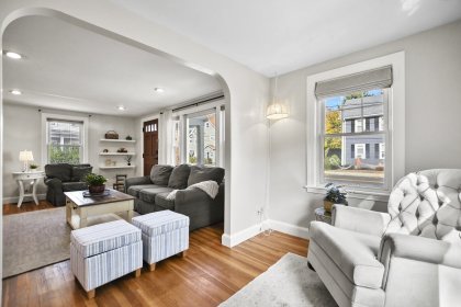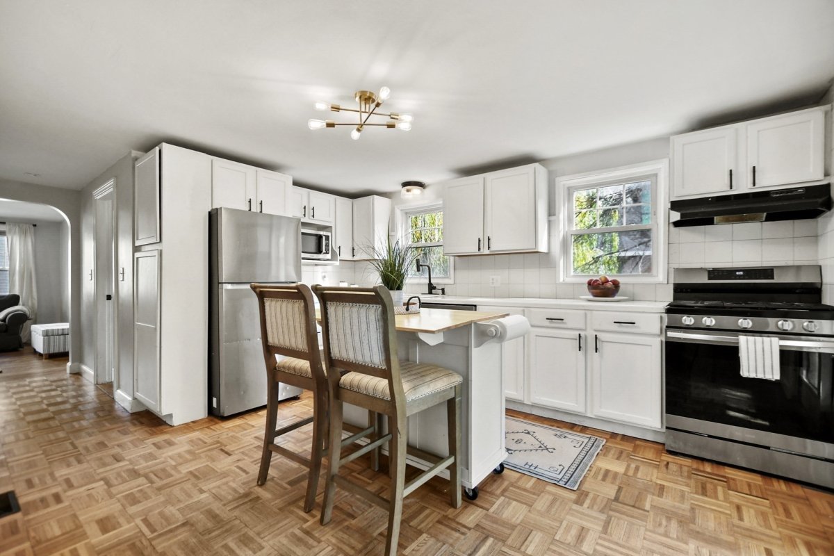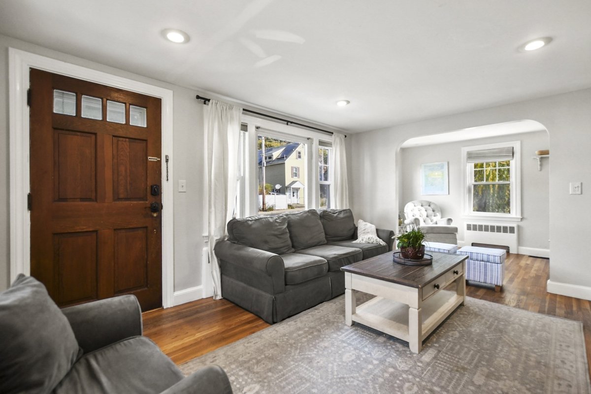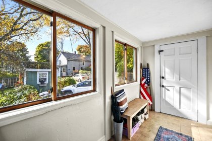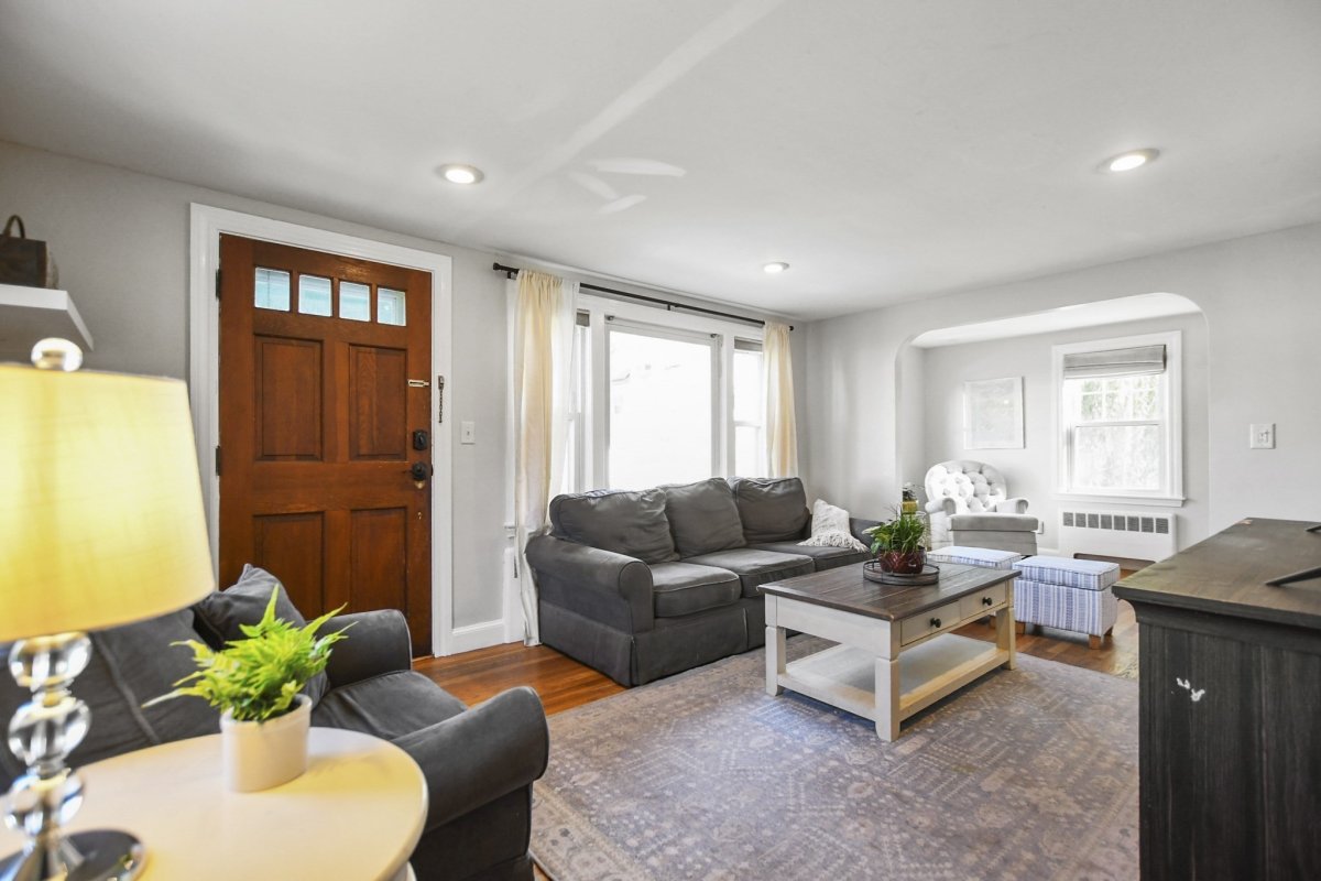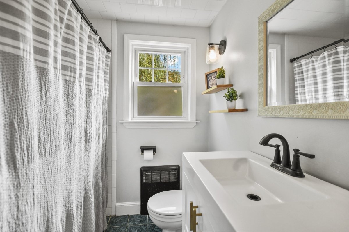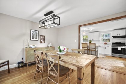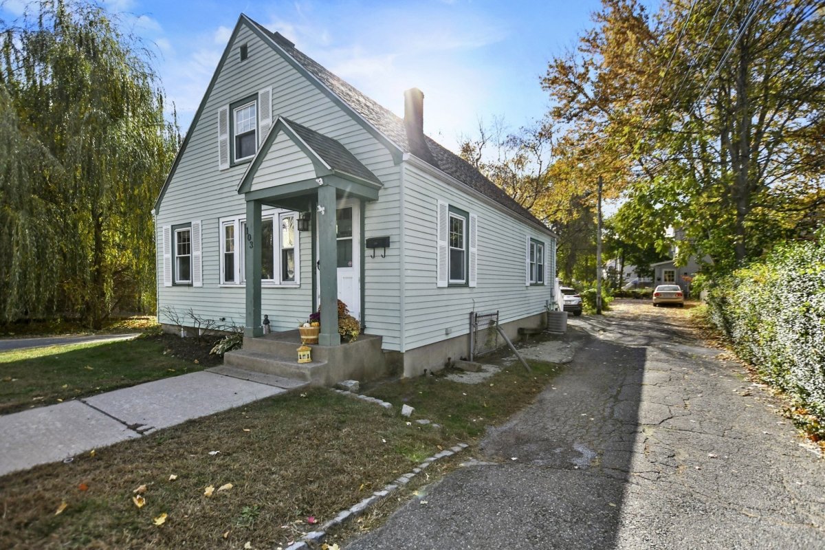 Welcome to 103 Franklin Street, right in the heart of Stoneham! This home is full of charm, with a beautiful fenced-in backyard shaded by mature trees, perfect for lazy afternoons, gardening, or hosting friends. Inside discover a sunny, welcoming living room, a cozy nook, a full bath, and a spacious dining area on the main floor. The eat-in kitchen boasting stainless steel kitchen appliances, opens to an enclosed mudroom with plenty of storage, looking out over that dreamy backyard oasis. Upstairs, you’ll find two comfortable, inviting bedrooms with cathedral ceilings ready for restful nights with central AC. The house has been freshly updated with a new back porch, refinished tub and shower, a new bathroom vanity, and a fresh coat of paint throughout. With two driveways, there’s plenty of parking for you and your guests. Stones throw away from Stoneham parks, the Boys & Girls Club, the town center, and the Melrose train stop—this place has it all!