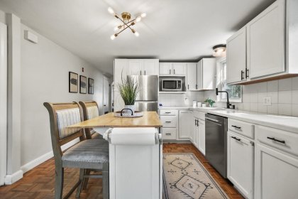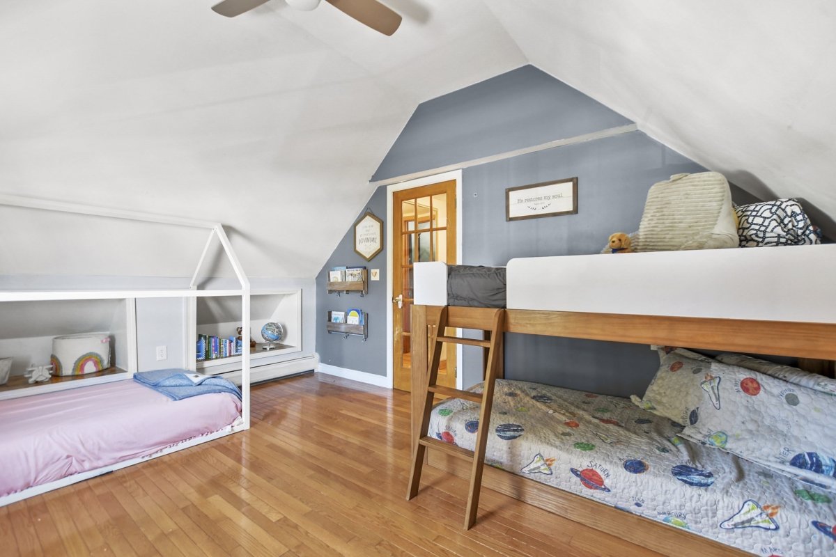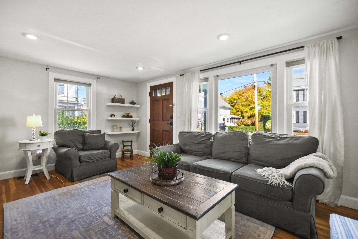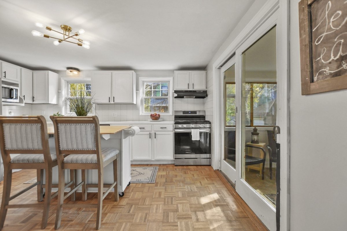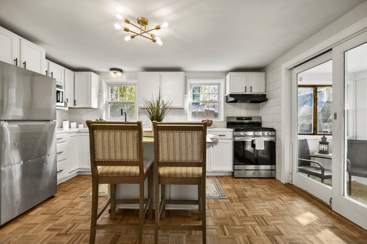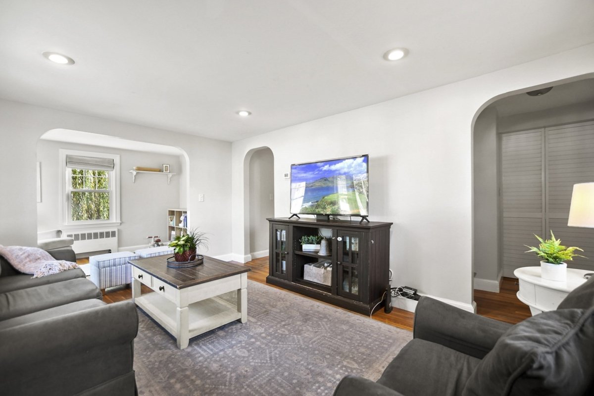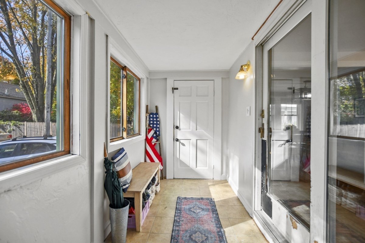 Welcome to 103 Franklin Street, right in the heart of Stoneham! This home is full of charm, with a beautiful fenced-in backyard shaded by mature trees, perfect for lazy afternoons, gardening, or hosting friends. Inside discover a sunny, welcoming living room, a cozy nook, a full bath, and a spacious dining area on the main floor. The eat-in kitchen boasting stainless steel kitchen appliances, opens to an enclosed mudroom with plenty of storage, looking out over that dreamy backyard oasis. Upstairs, you’ll find two comfortable, inviting bedrooms with cathedral ceilings ready for restful nights with central AC. The house has been freshly updated with a new back porch, refinished tub and shower, a new bathroom vanity, and a fresh coat of paint throughout. With two driveways, there’s plenty of parking for you and your guests. Stones throw away from Stoneham parks, the Boys & Girls Club, the town center, and the Melrose train stop—this place has it all!