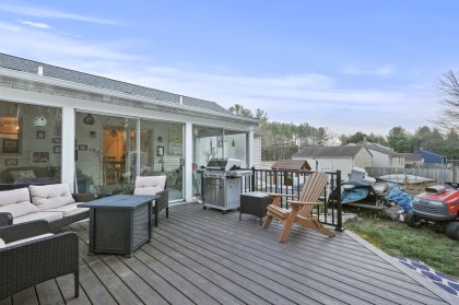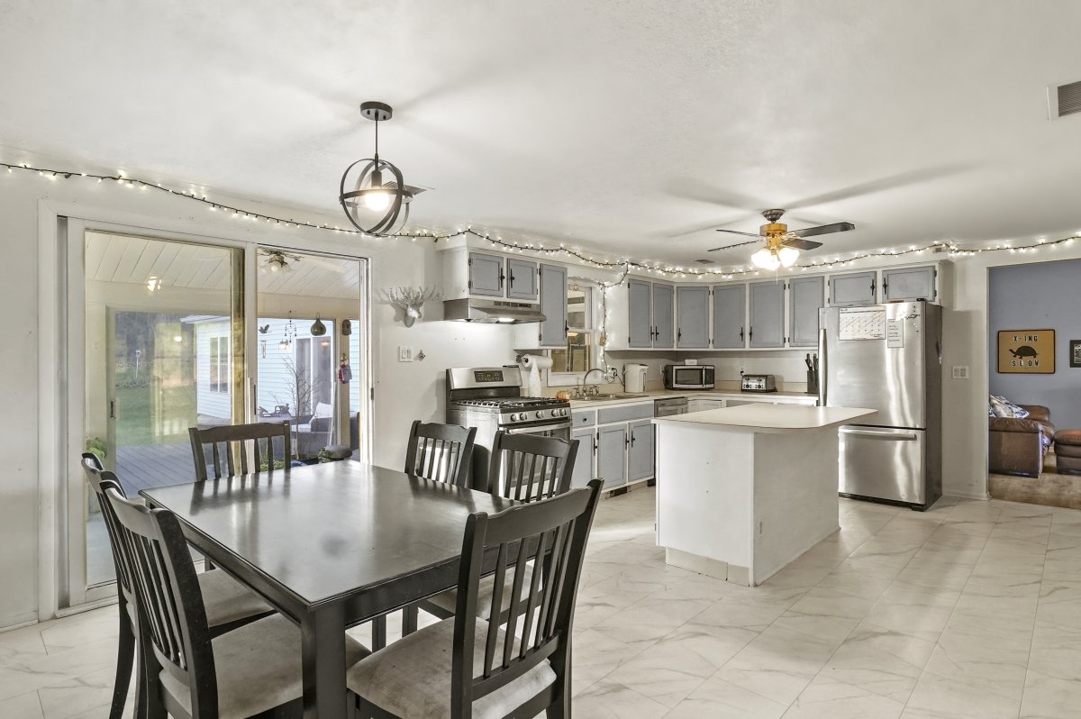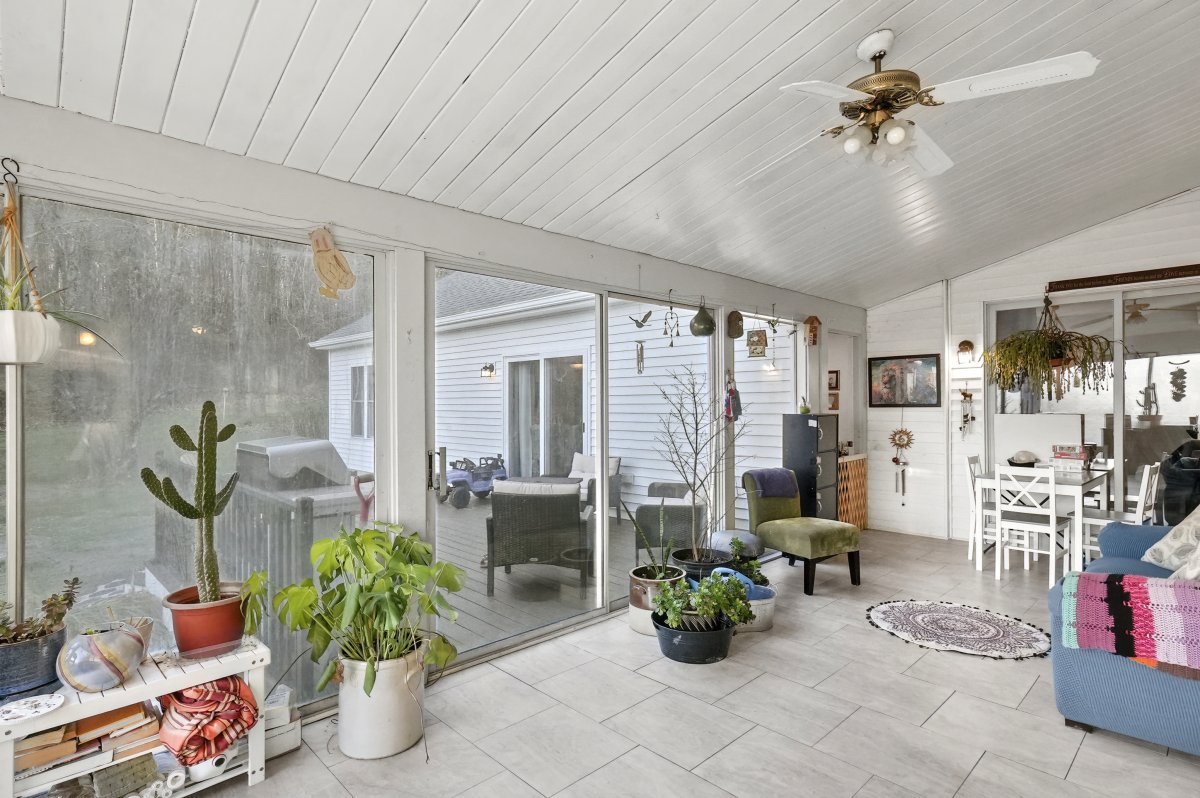 This versatile home features a 3-bedroom main house and a separate 2-bedroom, practically brand new, in-law ranch. This flexible living arrangement will suit various needs. The main side features a large kitchen with island and stainless steel appliances, 3-season porch with multiple slliders to the dining room and a bedroom, a mini-split for comfort, a large living room plus a vaulted family room. First floor laundry and adorable front porch. The primary bedroom boasts a walk in closet and its own bath. The in-law suite is stunning, it includes an entrance through sliders to the porch and deck. It has a brand new kitchen with granite counters, upgraded cabinets, a pantry closet, and stainless steel appliances. The suite offers 2 bedrooms, ample closet space, and a full bathroom with luxurious walk in shower. Additional features include, a 2-car tandem garage, 8-car paved driveway, a large level yard, a porch, a deck with sliders, and a partially fenced yard with a crushed stone patio