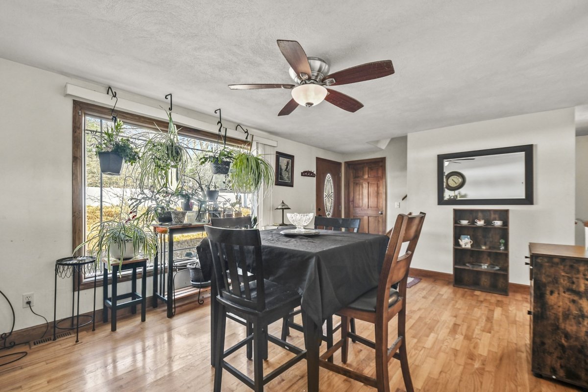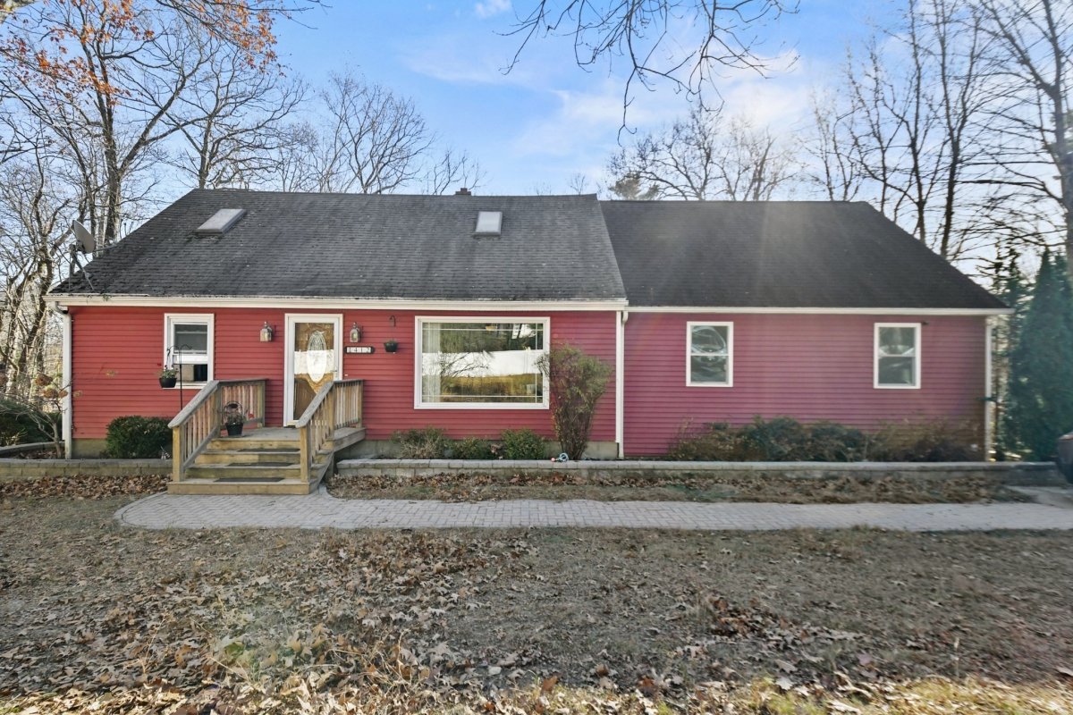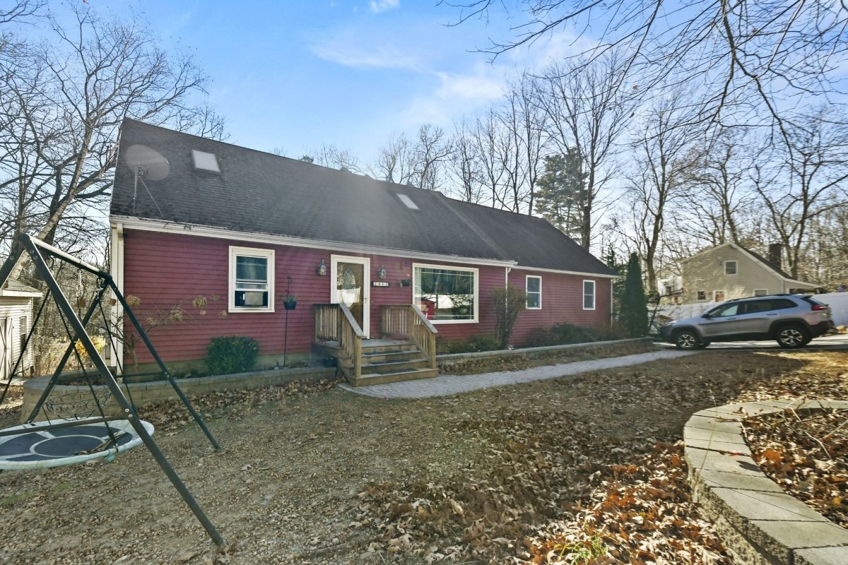Conveniently located in the desirable town of Charlton, this inviting Cape-style home offers the perfect combination of comfort & charm. The spacious dining room features hardwood floors & a picture window that fills the space with natural light. The kitchen is ideal for cooking & entertaining, while the cozy living room boasts cathedral ceilings & a slider that opens to a back deck. On the 1st floor, you'll also find a versatile office with HW floors, a primary bedroom with a closet, and a full bathroom with a convenient linen closet. Upstairs, 2 additional bedrooms offer ample closet space, with 1 featuring two closets & a skylight for added light. The 2nd full bath includes a double vanity & another linen closet. The home is equipped with 3 mini splits for year-round comfort & efficiency. Outside, enjoy plenty of parking with a spacious driveway, partial vinyl fencing for privacy, a brick pathway leading to the wooden deck, a large storage shed, & a generous yard. Welcome home!