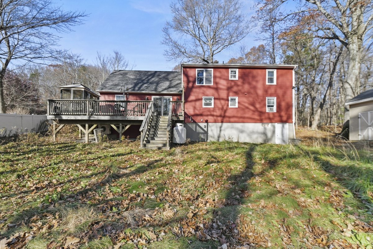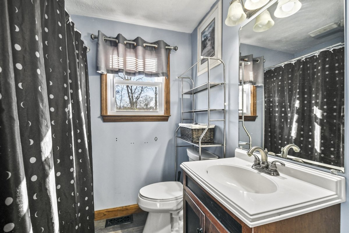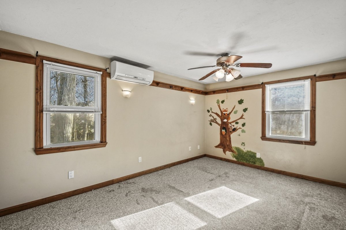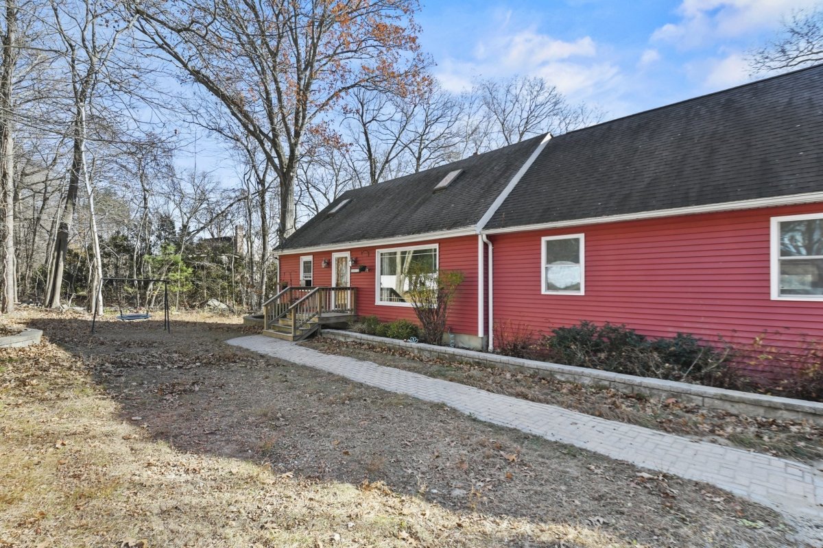 Conveniently located in the desirable town of Charlton, this inviting Cape-style home offers the perfect combination of comfort & charm. The spacious dining room features hardwood floors & a picture window that fills the space with natural light. The kitchen is ideal for cooking & entertaining, while the cozy living room boasts cathedral ceilings & a slider that opens to a back deck. On the 1st floor, you'll also find a versatile office with HW floors, a primary bedroom with a closet, and a full bathroom with a convenient linen closet. Upstairs, 2 additional bedrooms offer ample closet space, with 1 featuring two closets & a skylight for added light. The 2nd full bath includes a double vanity & another linen closet. The home is equipped with 3 mini splits for year-round comfort & efficiency. Outside, enjoy plenty of parking with a spacious driveway, partial vinyl fencing for privacy, a brick pathway leading to the wooden deck, a large storage shed, & a generous yard. Welcome home!