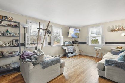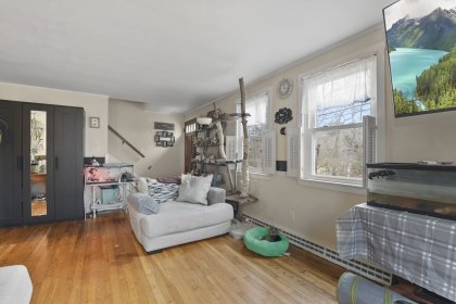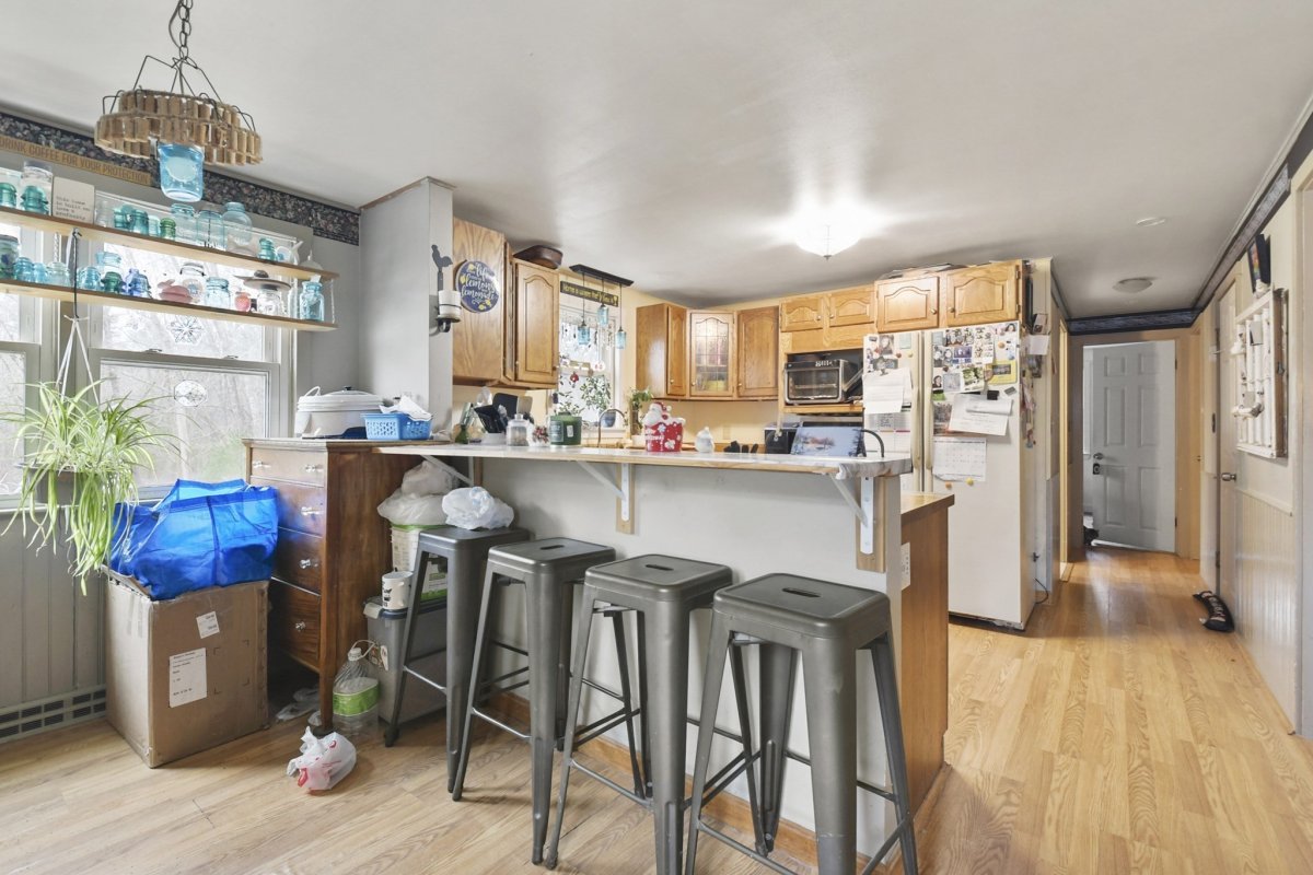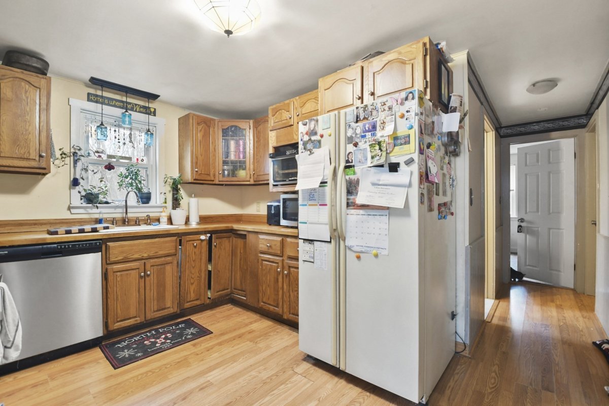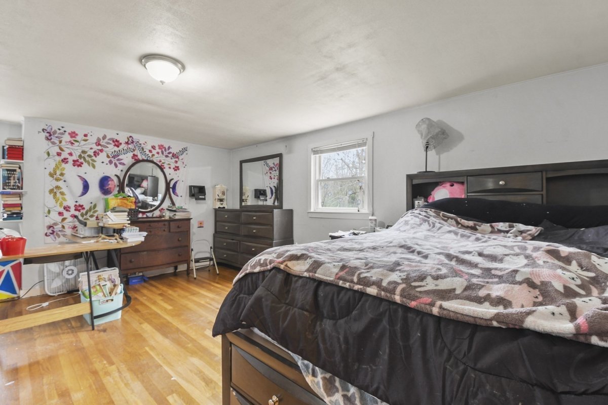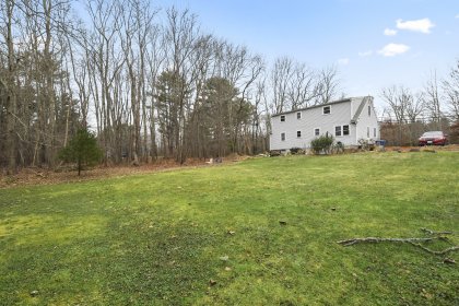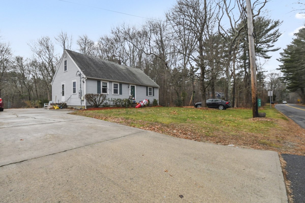 Opportunity knocks with this spacious 3-bedroom, 1.5-bath Cape, offering 1,710 sq. ft. of living space on a private .72-acre lot. While the home needs a little TLC, its solid foundation and desirable features make it the ideal house for someone looking to add their personal touch. The exterior boasts durable Hardie Siding Cement Board (2007), a roof updated in 2013, and replacement windows. Inside, enjoy an eat-in kitchen, a large front living room, and the convenience of a first-floor bedroom and full bath. The upstairs half bath offers potential to add a full bath, increasing functionality.With hardwood floors throughout, charming built-ins, and a Title V-approved septic, this home is full of potential. The large yard is perfect for gardeners and those who love the outdoors.Enjoy small-town charm while staying close to highways and shopping. With some updates and care, this home could shine again. Sold as-is. Price reflects work needed.