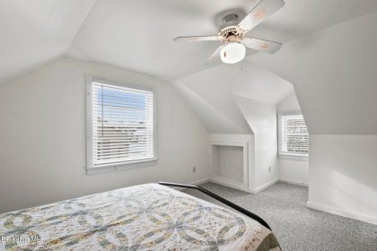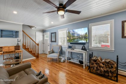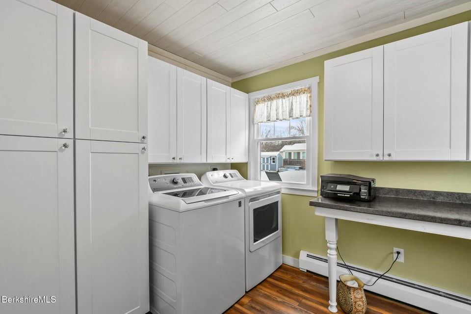 Welcome to this meticulously maintained Cape-style home, the home you have been waiting for! The first floor features a stunning updated kitchen, complete w/ granite countertops and radiant heating in the flooring for that extra touch of comfort. Relax in the cozy living room, highlighted by a wood-burning fireplace. The first floor also includes a spacious bedroom and a full bathroom, along with the convenience of a first-floor laundry. Every detail in this home has been thoughtfully curated to enhance its charm and livability. Some of those highlights are the crown molding, gleaming hardwood floors, and custom interior window shutters. Upstairs you will discover two additional bedrooms with so much character accompanied by a full marble bathroom featuring a jetted tub.
