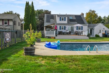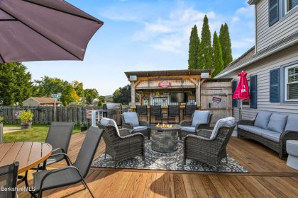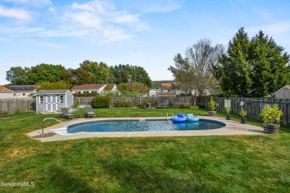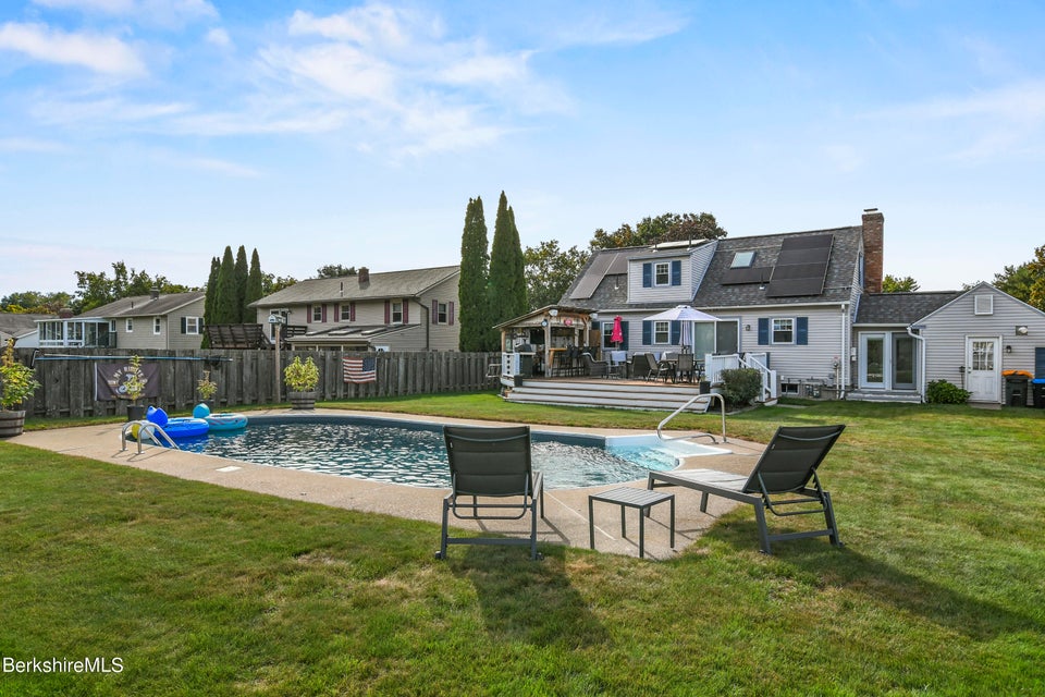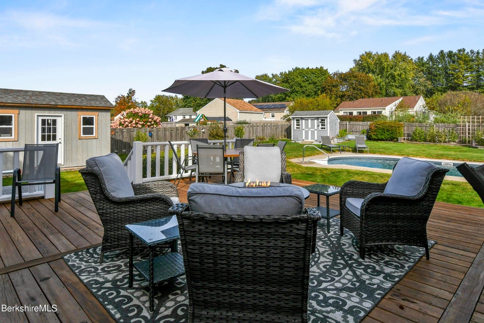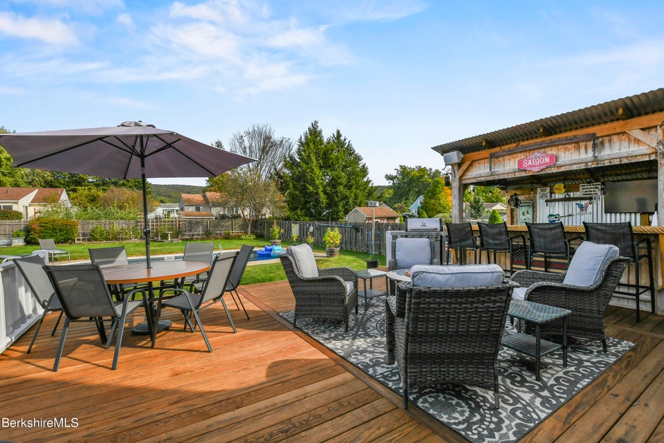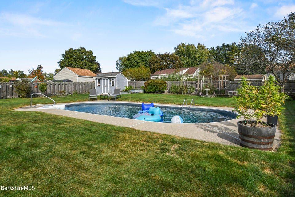Step outside to your very own backyard oasis! The level yard is perfect for entertaining, boasting a heated inground pool a large deck, a custom bar area, and even an outdoor bathroom for added convenience. Additional storage is available with two storage sheds and an oversized one-car garage. This home is definitely not a drive-by! Don't miss the opportunity to make it yours!