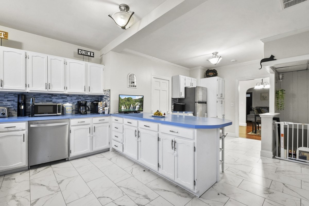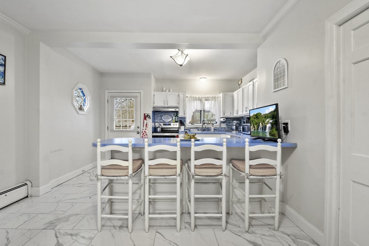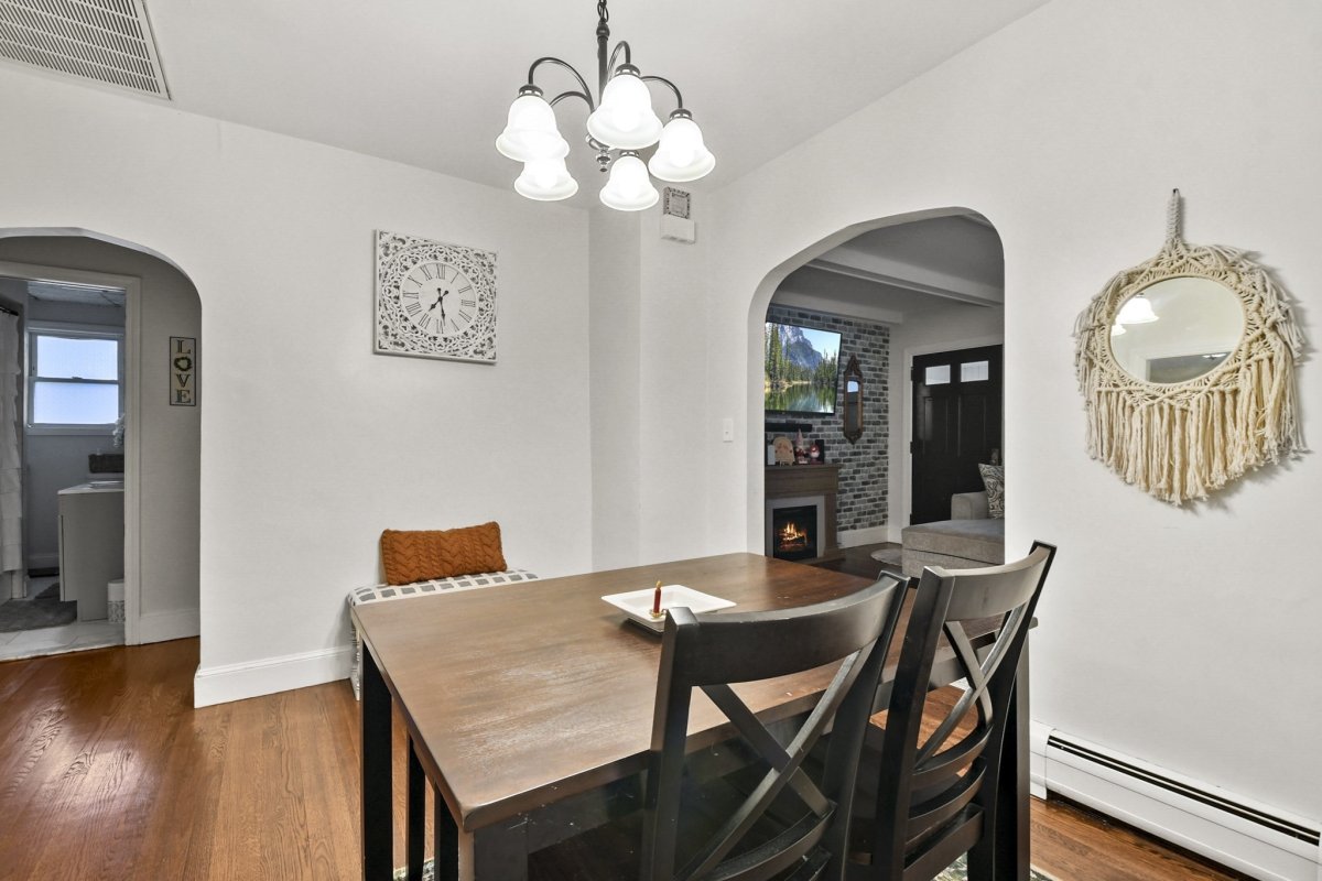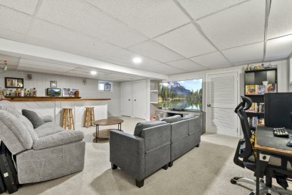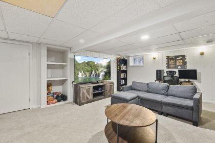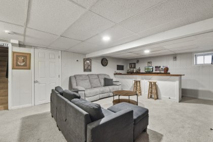 Move-in ready and perfect for a starter home or downsizing, this charming 2-bedroom home has been thoughtfully updated. The large kitchen features modern finishes and appliances, while updated lighting enhances the warm and inviting atmosphere. The family room boasts a custom bar, making it a great space for entertaining. Outside, the backyard offers a cozy fire pit, perfect for relaxing evenings. The laundry is conveniently located in the finished basement's utility room. This home is a must-see.