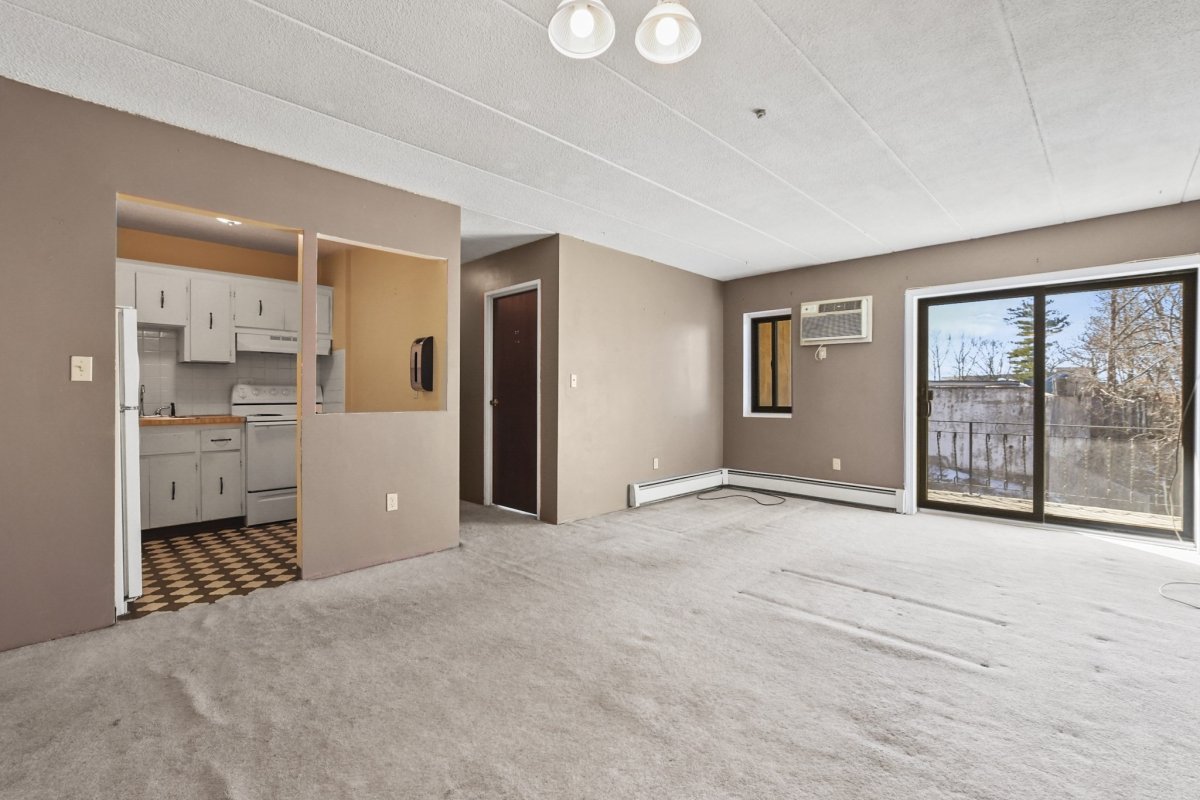 Welcome to this charming 1 bed, 1 bath open-concept condo in desirable Stoneham, offering a fantastic location with easy access to Routes 93 and 128. The spacious living/dining areas feature plush wall-to-wall carpeting, creating a cozy atmosphere and offering plenty of room for entertaining or relaxation. A slider leads to a private balcony, perfect for enjoying fresh air. The kitchen offers ample cabinetry for storage, while the large bedroom provides generous closet space. A full bath completes the unit for your convenience. Additionally, the building features card-operated laundry facilities. Don't miss the opportunity to make this home yours!