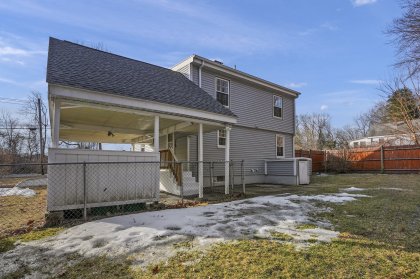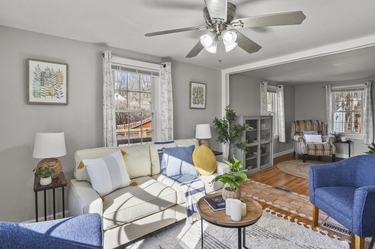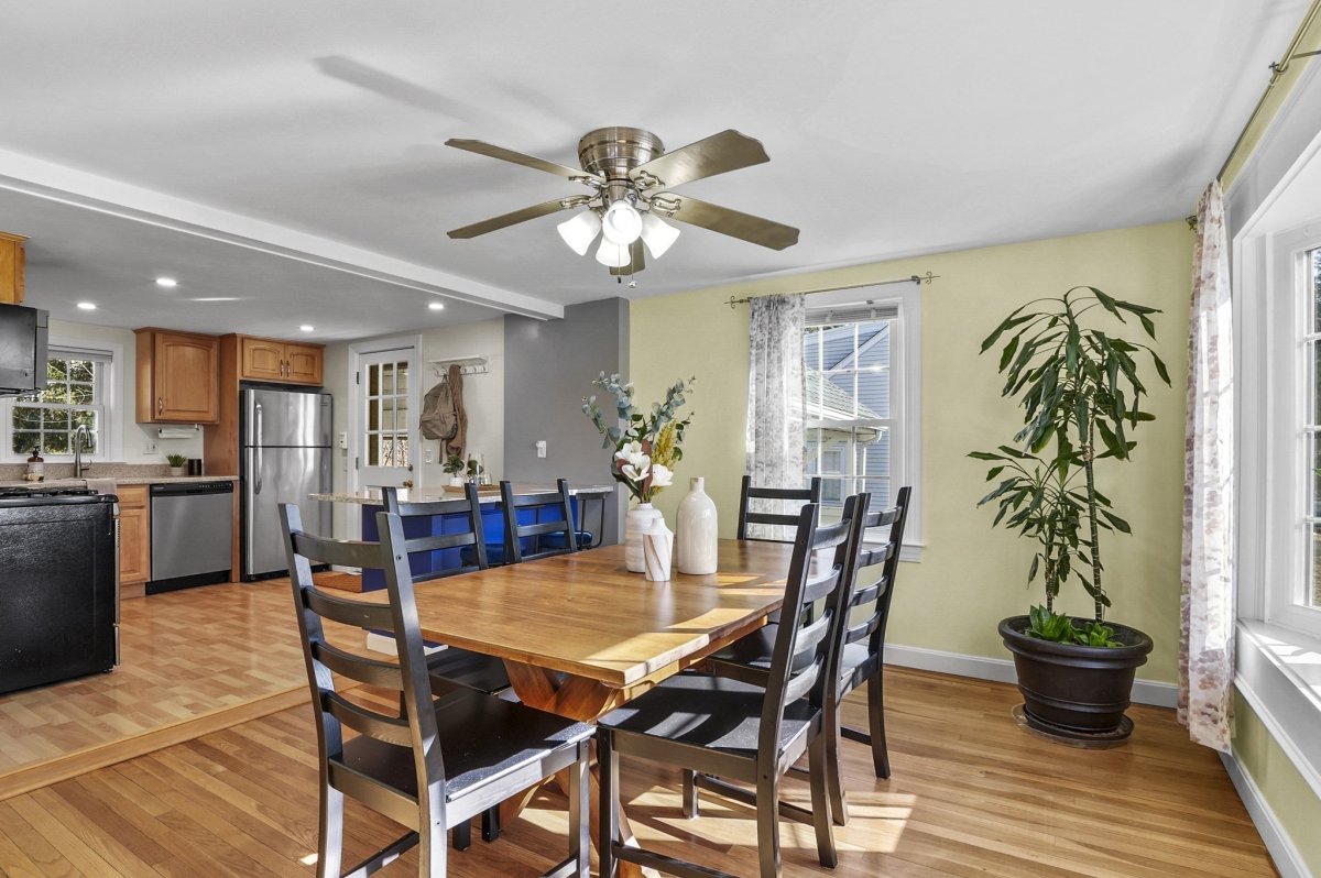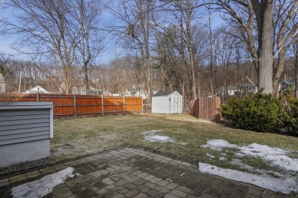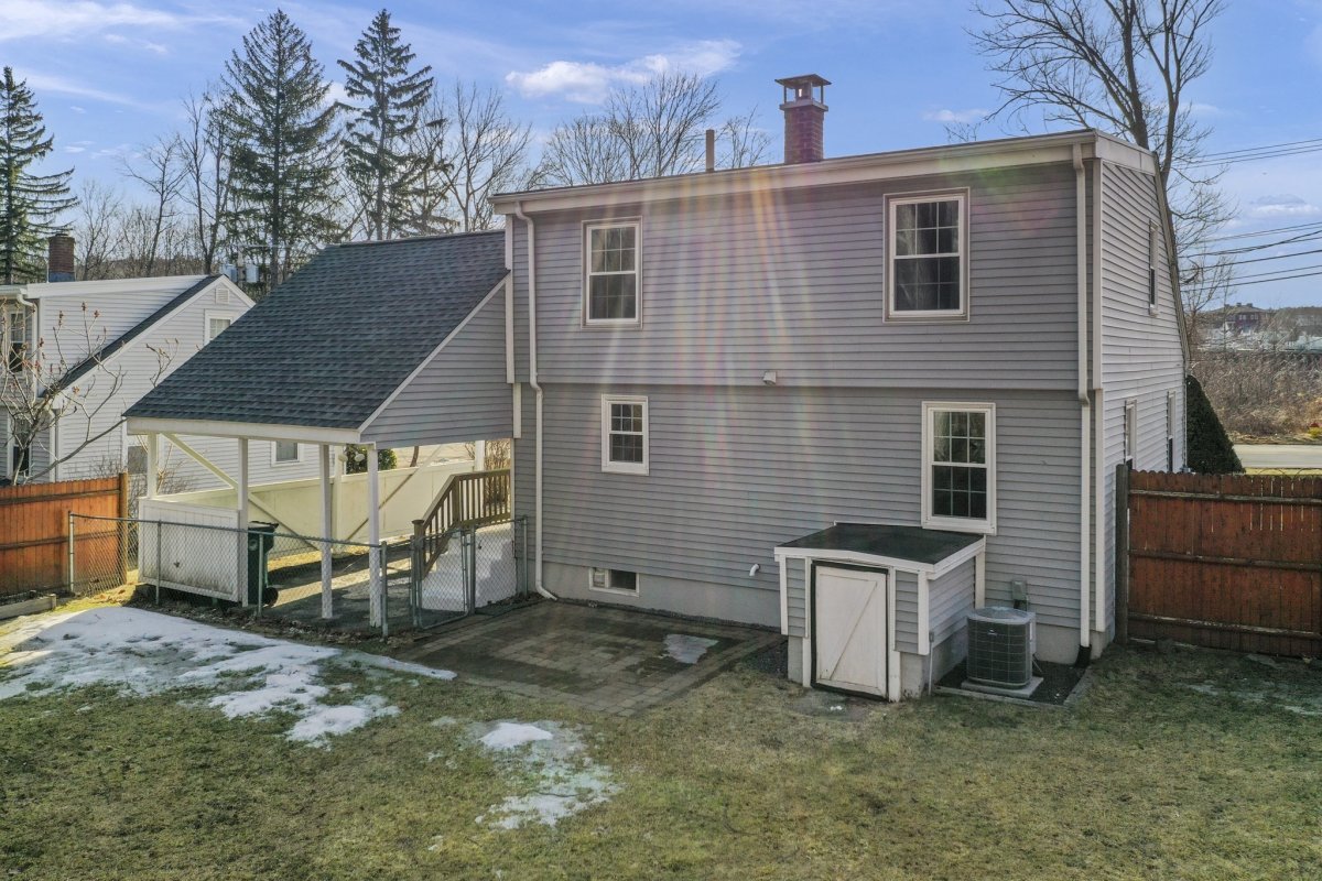 Welcome home! Enter into the sun-filled living room with gleaming hardwood floors, seamlessly flowing into an adjacent sitting area. The kitchen boasts stainless steel appliances, a breakfast bar, and an open-concept design leading to the formal dining room, where a bay window floods the space with natural light. A full bath completes the first floor. Upstairs, you'll find three comfortable bedrooms, one featuring charming skylights. Enjoy year-round comfort with central air. Outside, a fully fenced backyard with a brick patio and storage shed offers the perfect retreat. A paved driveway and carport with additional storage above, add convenience to this inviting home! Some updates included a newer roof with transferable warranty, new hot water tank (2021) and newer furnace. Don't miss your chance to make this house YOUR home!