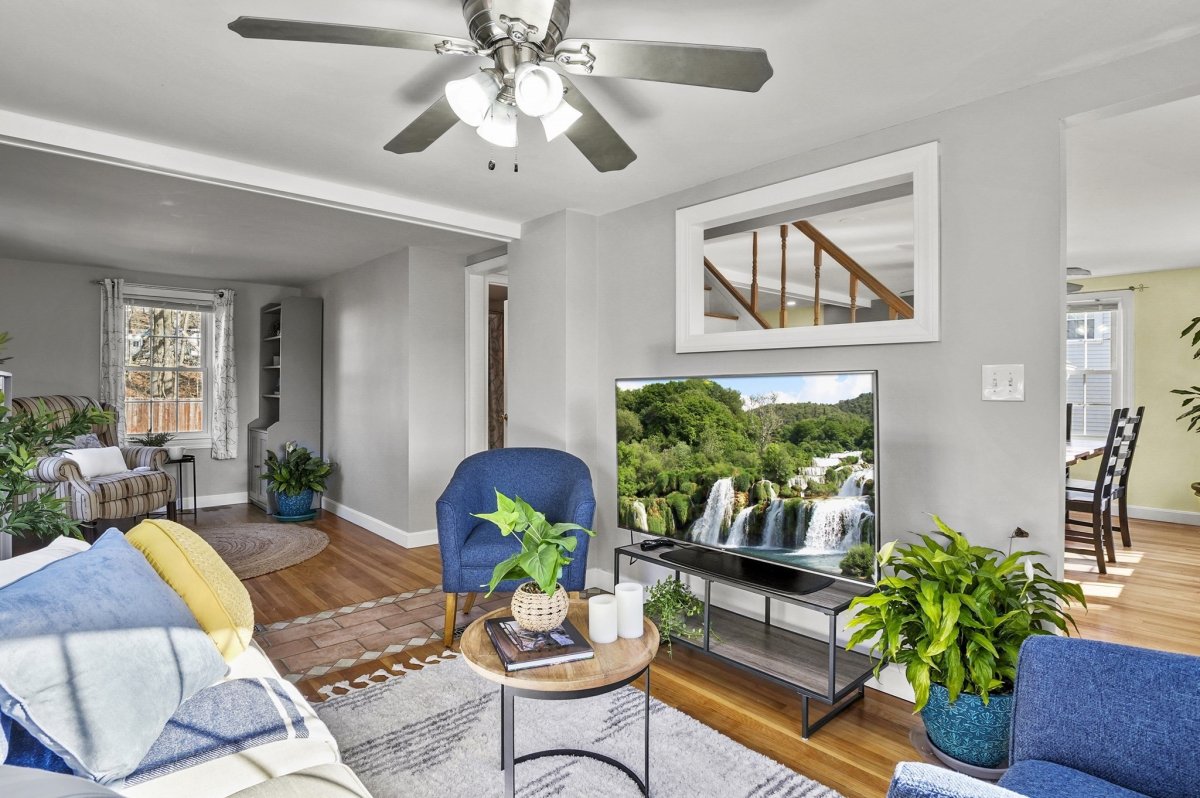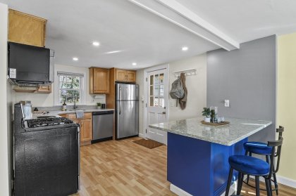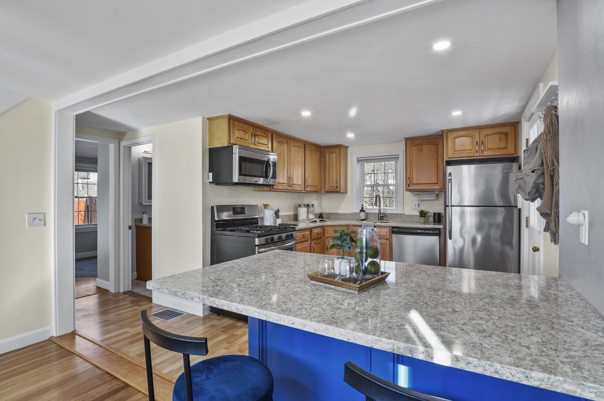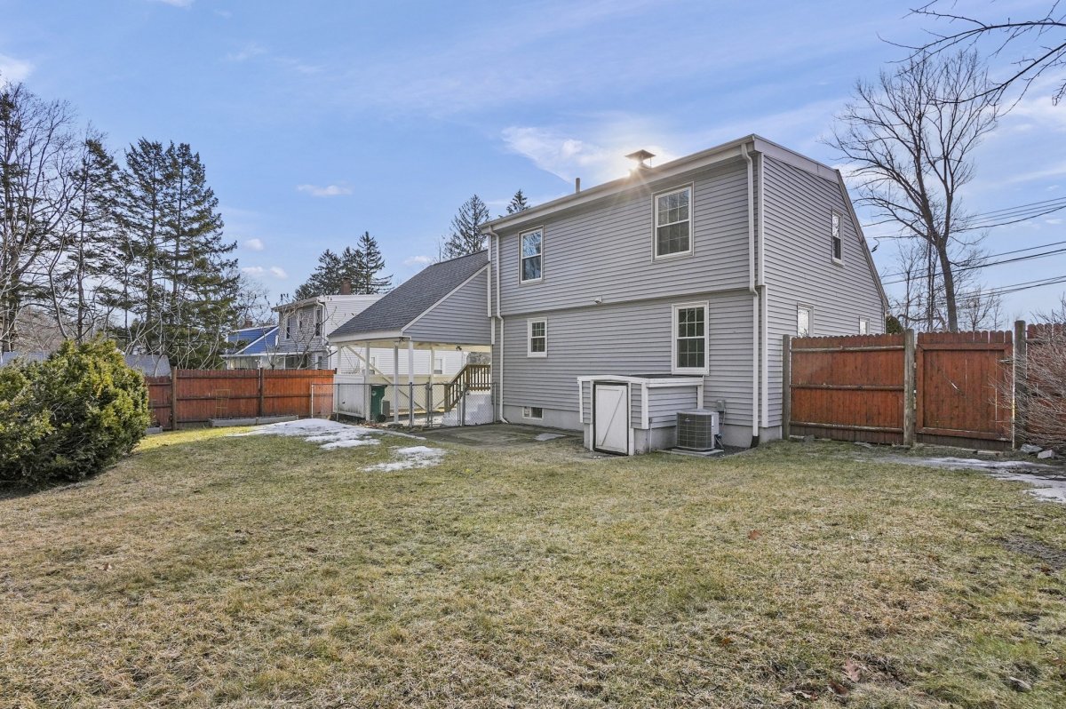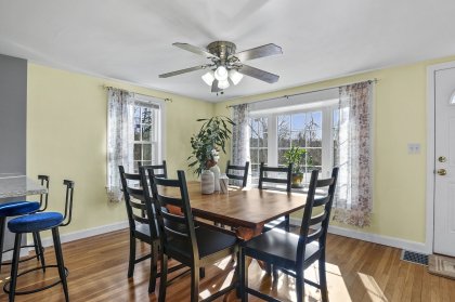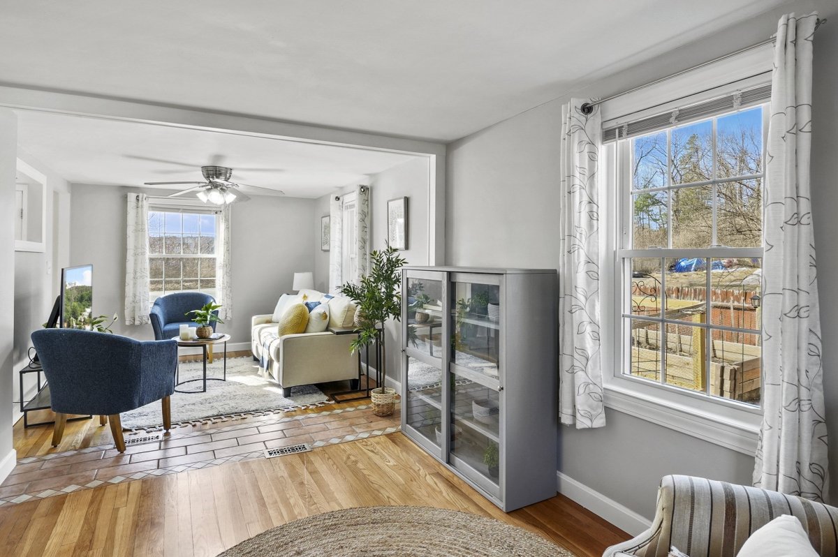 Welcome home! Enter into the sun-filled living room with gleaming hardwood floors, seamlessly flowing into an adjacent sitting area. The kitchen boasts stainless steel appliances, a breakfast bar, and an open-concept design leading to the formal dining room, where a bay window floods the space with natural light. A full bath completes the first floor. Upstairs, you'll find three comfortable bedrooms, one featuring charming skylights. Enjoy year-round comfort with central air. Outside, a fully fenced backyard with a brick patio and storage shed offers the perfect retreat. A paved driveway and carport with additional storage above, add convenience to this inviting home! Some updates included a newer roof with transferable warranty, new hot water tank (2021) and newer furnace. Don't miss your chance to make this house YOUR home!