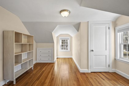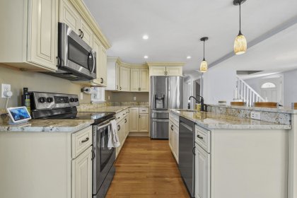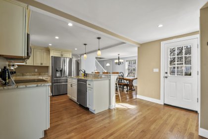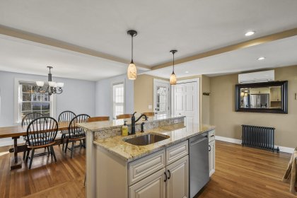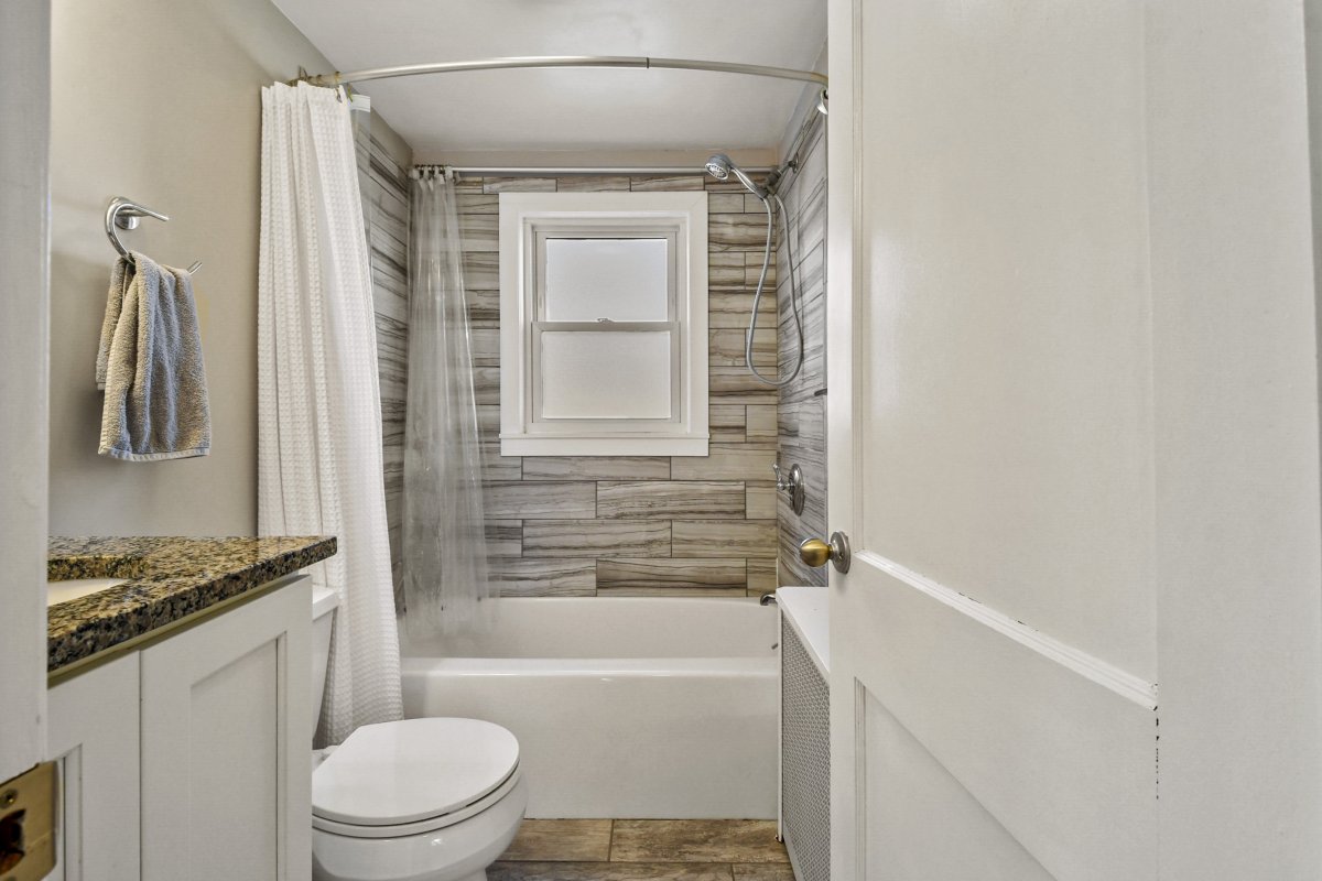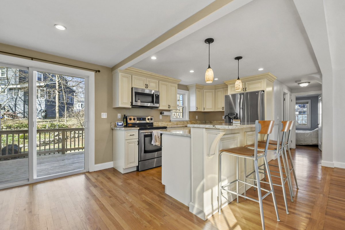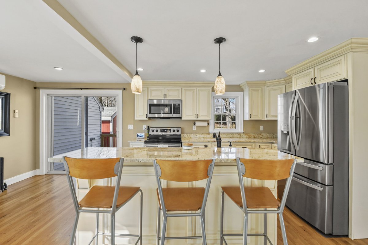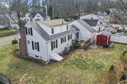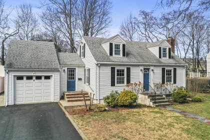 Welcome home to this beautifully updated cape in a great Stoneham neighborhood! Walk into the front door and see a bright and well laid-out first floor with a living room complete with a pellet stove, a spacious dining room and an updated, roomy kitchen with gorgeous, creamy cabinets, updated appliances, granite countertops, and a large center island perfect for entertaining. This home is perfect for first floor living with a bedroom and full bathroom on the main floor. Upstairs level has two additional bedrooms with ample closets and custom built-ins with attic storage. The partially finished basement features an updated half bath, granite shelving accents, recessed lighting and a small bar area- a versatile space perfect for entertaining, a play room, bonus room or home office. This house also has an attached one car garage, a flat backyard perfect for outdoor activities, and a shed with power! This home is in close proximity to highways, a train station and more! Check it out!