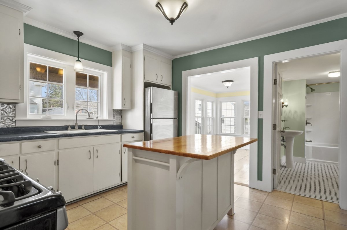 This beautifully maintained 3-bedroom, 2-bath home effortlessly marries timeless charm with modern comfort. Inside, warm pine floors and classic wainscoting create a cozy ambiance, flowing seamlessly from the welcoming living room into the open dining area and kitchen, featuring stainless appliances, a gas stove, and large island. A full bath and laundry area add functionality, while the sunroom, bathed in natural light through walls of windows, offers a serene retreat. French doors lead to the side porch which also completes this floor. Upstairs, you'll find 3 inviting bedrooms, including a primary with dual closets, and a stylish tiled bath with walk-in shower. Outside, enjoy a backyard with a privacy fence, easy-care gravel landscaping, a storage shed, and paved driveway. Ideally situated close to downtown Exeter and convenient commuter routes. Experience the charm for yourself—schedule your private showing!