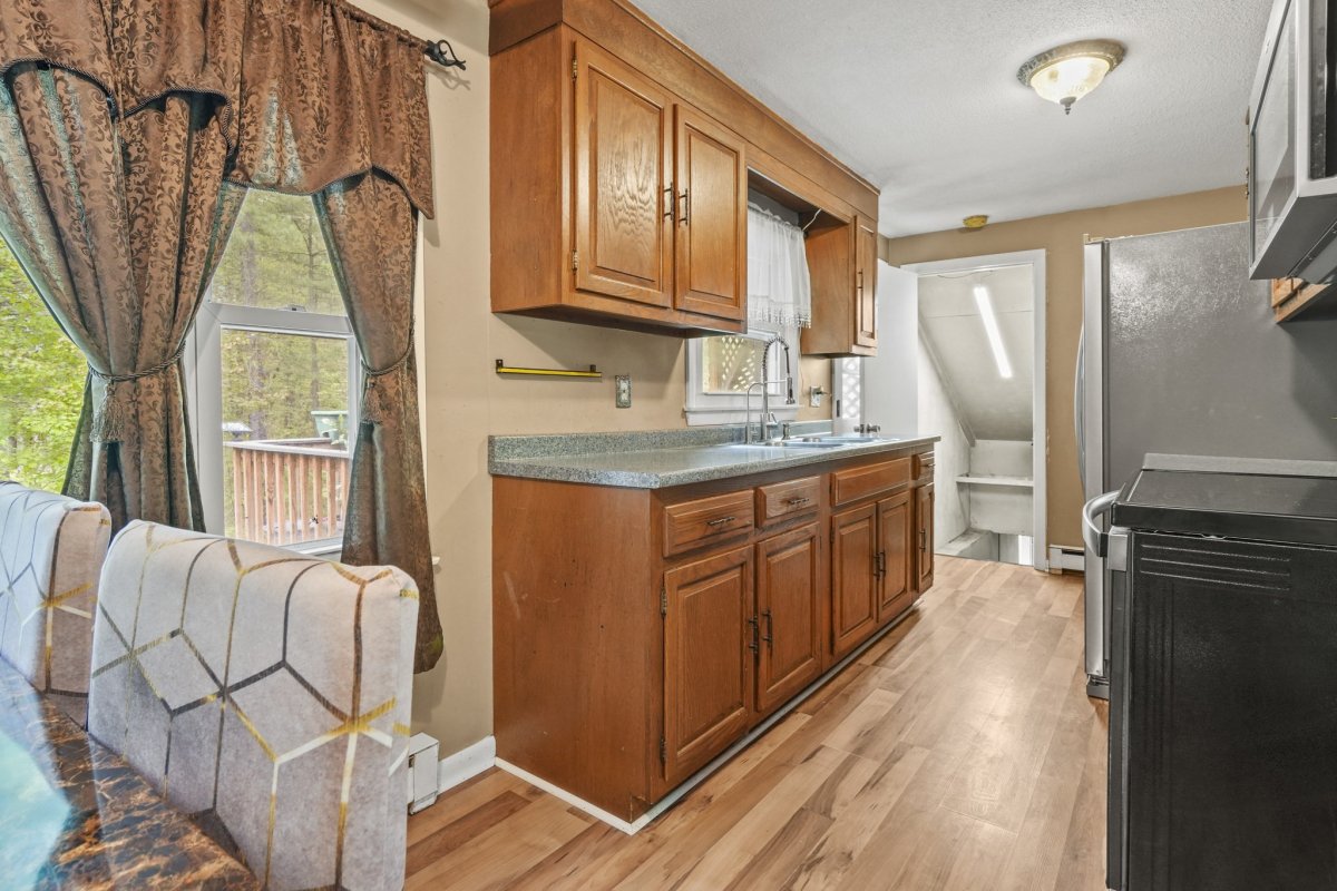 Welcome to this inviting 3-bedroom, 1-bath ranch located just off Main Street with easy access to Route 202. Ideally located near local amenities within a well-established neighborhood, this home offers both comfort and accessibility. Enter the bright and welcoming living room featuring a large picture window that fills the space with natural light. Flow seamlessly into the dining area and kitchen, boasting stainless steel appliances. Three generously sized bedrooms share a well-appointed full bathroom. Downstairs, the finished basement offers a spacious family room with a built-in bar area—perfect for hosting or relaxing. You'll also find a dedicated laundry room and a utility room with ample storage space. Enjoy the outdoors on the back deck overlooking the backyard or unwind in your garden. The detached two-car garage offers plenty of parking, additional storage or use as a workshop. Don’t miss this move-in-ready gem in a convenient Athol location!