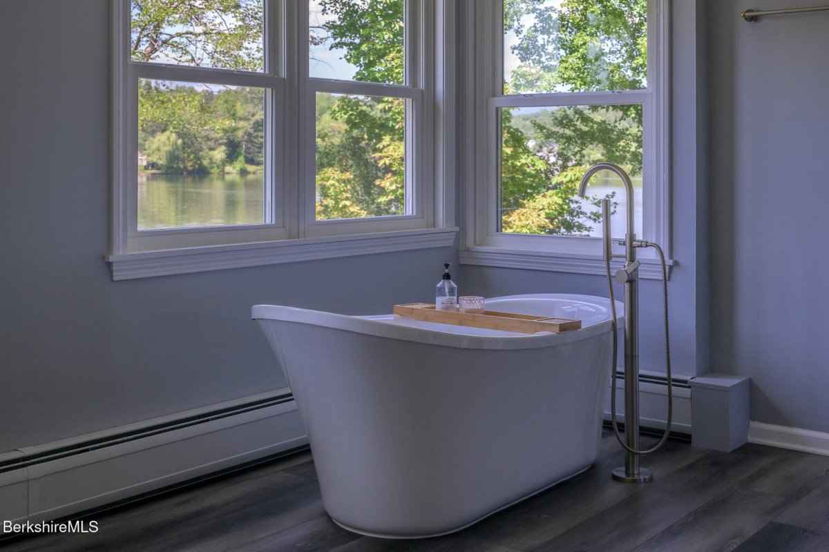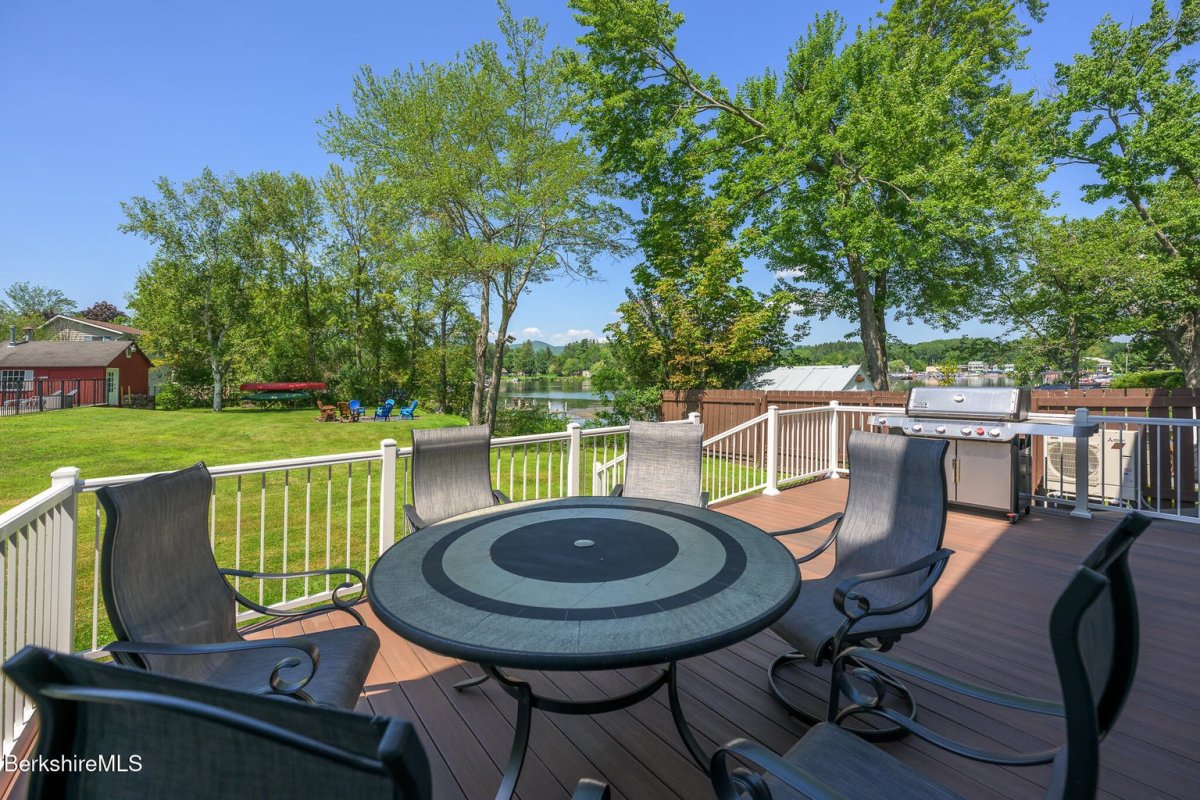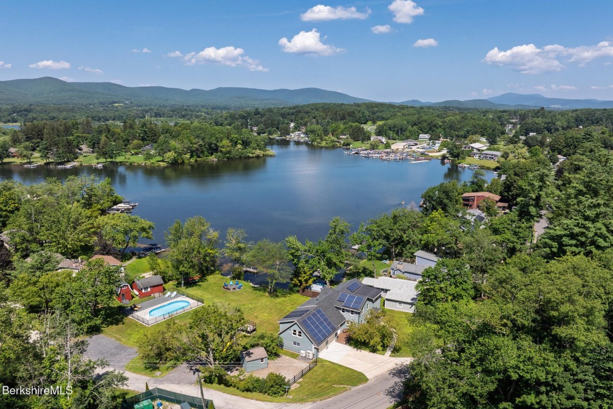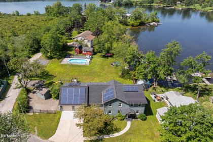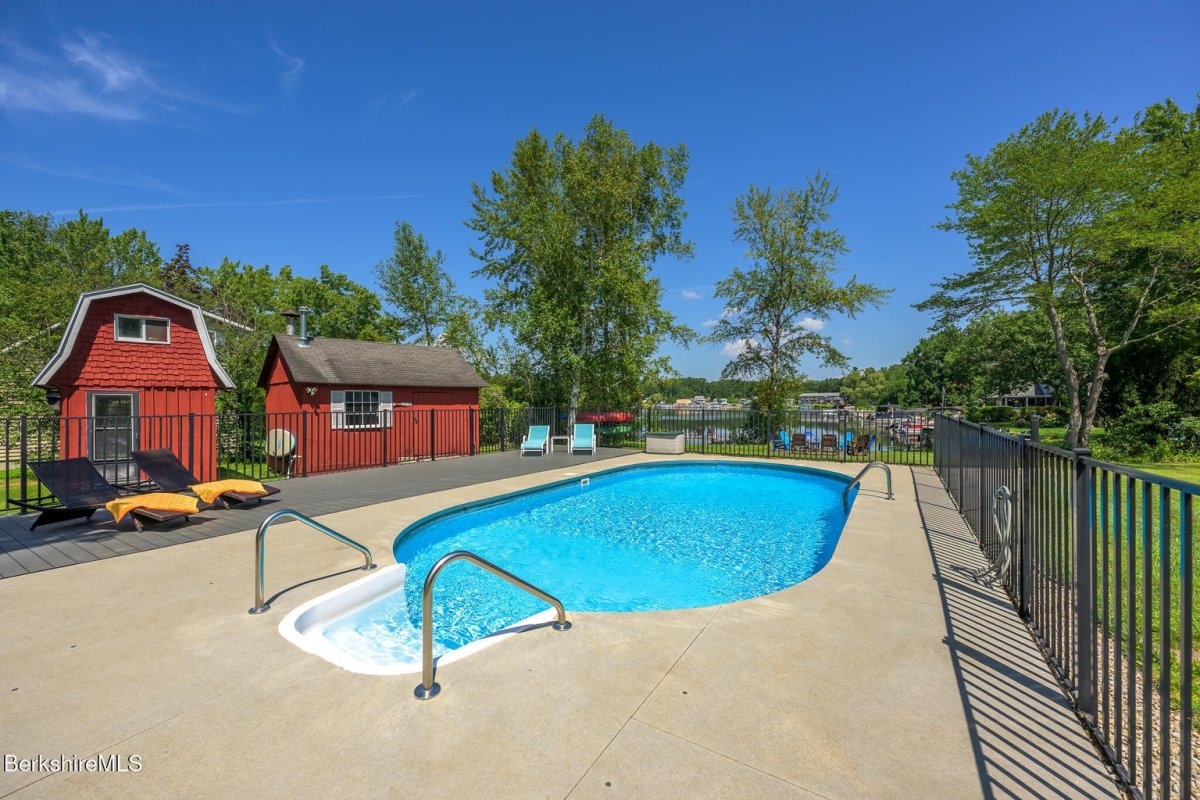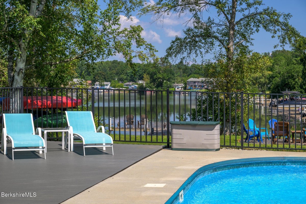 This exceptional lakefront retreat offers it all! Nearly 100 feet of eastern shoreline, private dock, and shimmering in-ground pool. Inside, a beautiful kitchen flows into living spaces with lake views from nearly every room. The first floor also features a spacious living room, dining area, play/relaxation room, office with custom desk/Murphy bed, and full bath. Upstairs, the luxurious primary suite boasts a spa-like bath with soaking tub overlooking the water and mountains. Two additional bedrooms plus a custom built bunk bedroom complete the home. Numerous upgrades including central air conditioning were designed to provide the utmost in comfort. Whether hosting on the deck, relaxing by the pool, or watching spectacular sunrises from the dock, every moment here is pure bliss!