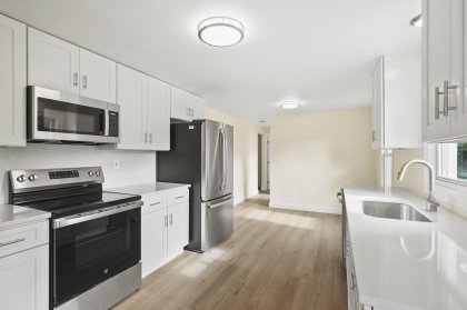 Single-Level Living, Fully Remodeled and Move-In Ready! Enter inside to find a sun-filled living room with a cozy fireplace, perfectly positioned next to the formal dining room for easy entertaining. The updated eat-in kitchen boasts sleek white shaker cabinets and stainless steel appliances. Two comfortable bedrooms and a full bath complete the main level. The finished lower level offers a third bedroom and a versatile bonus room, ideal for a home office, gym, or playroom. Situated on a spacious corner lot, this home is conveniently located near shopping, restaurants, and major routes—making it the perfect blend of comfort and convenience.