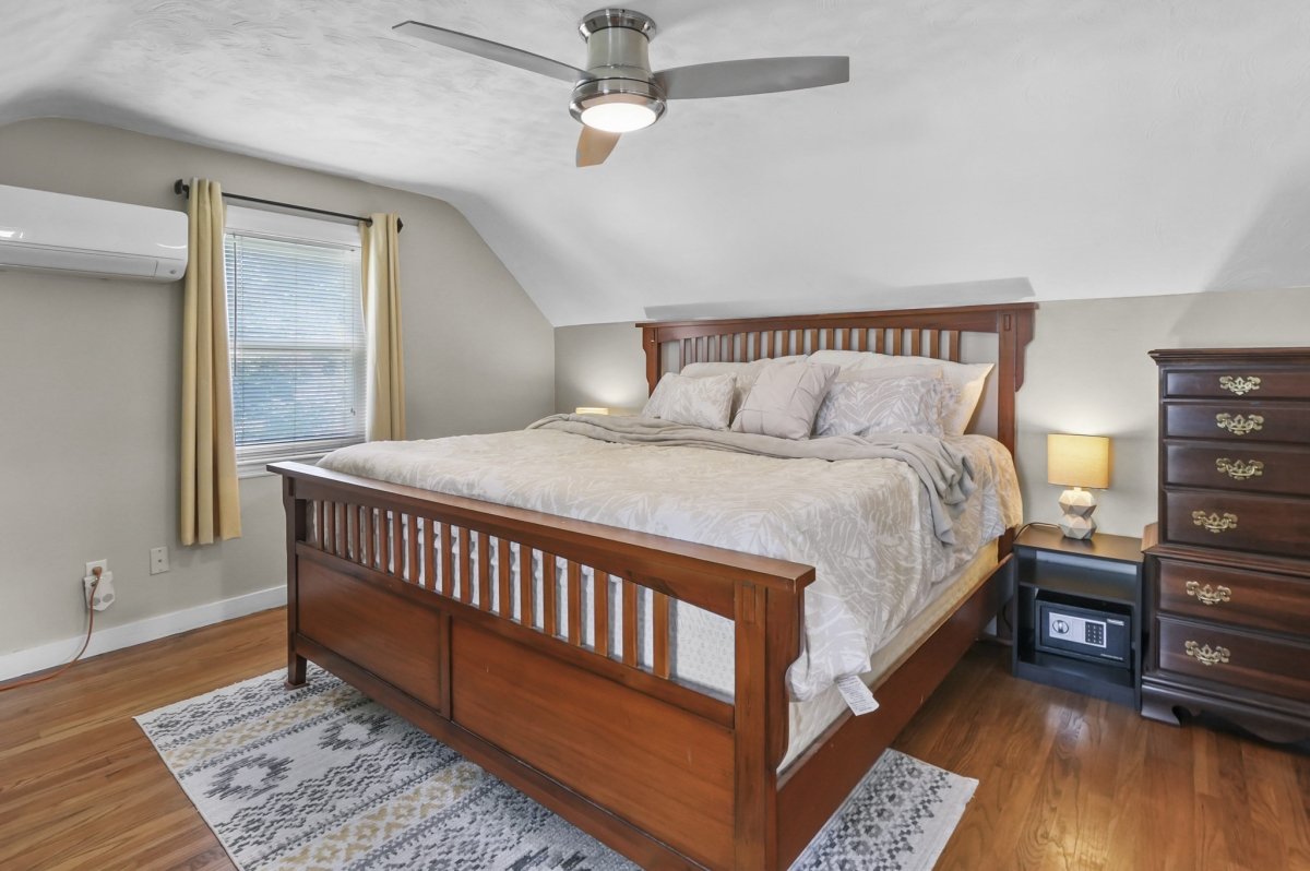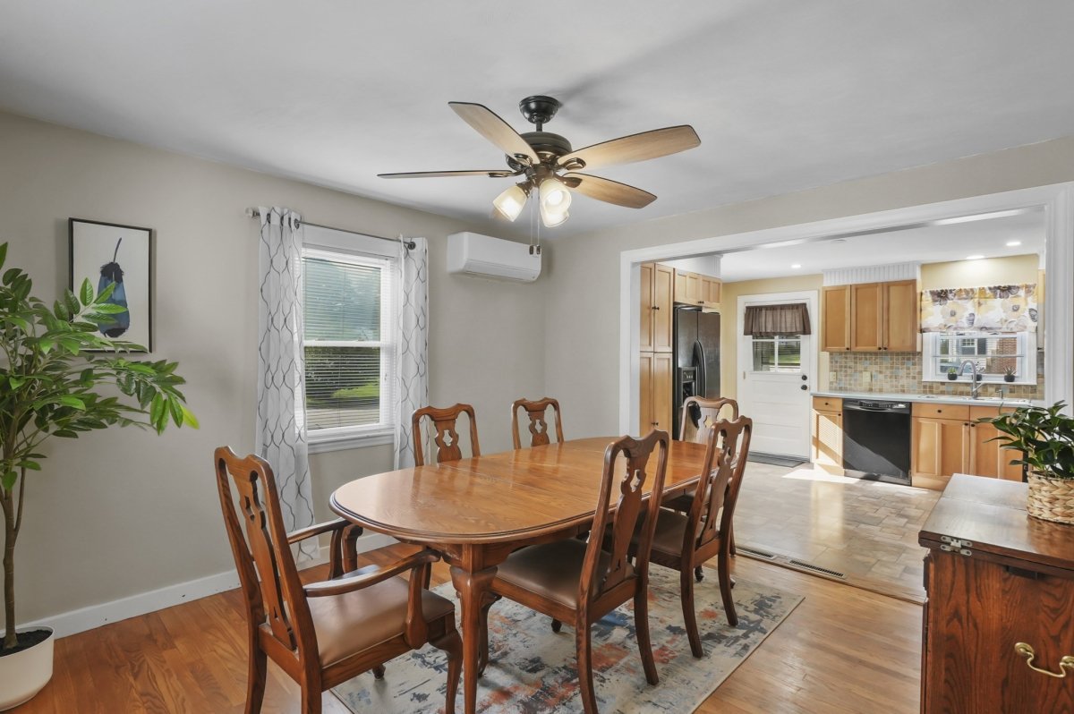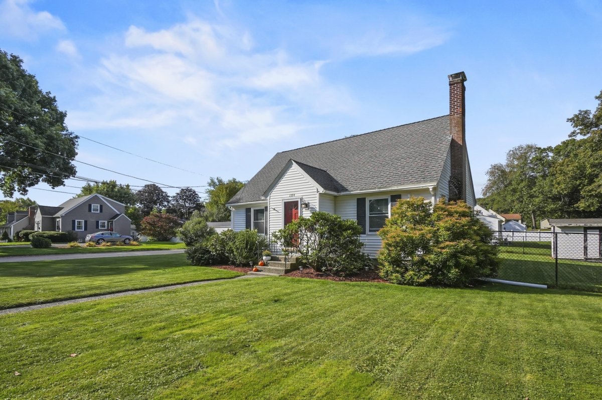 Experience the charm of a classic New England Cape-style home in Auburn! This delightful 3-bedroom, 1.5-bathroom home blends traditional character with modern convenience. Enter inside to find a welcoming living room, featuring beautiful hardwood floors and a cozy wood-burning fireplace—perfect for crisp New England evenings. The kitchen offers ample cabinet space and direct access to a deck, ideal for indoor/outdoor living. You'll also find a formal dining room for special gatherings. The first floor provides easy one-level living with a primary bedroom and a full bathroom. Upstairs, there are two additional bedrooms boasting natural sunlight and a half bathroom. Situated on a great corner lot, the property includes a fully fenced-in backyard with a storage shed for all your needs. With its great central location and easy access to major routes, commuting is a breeze. Don't miss the chance to make this quintessential New England home your own!