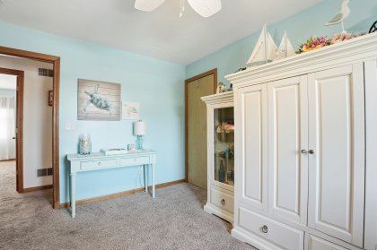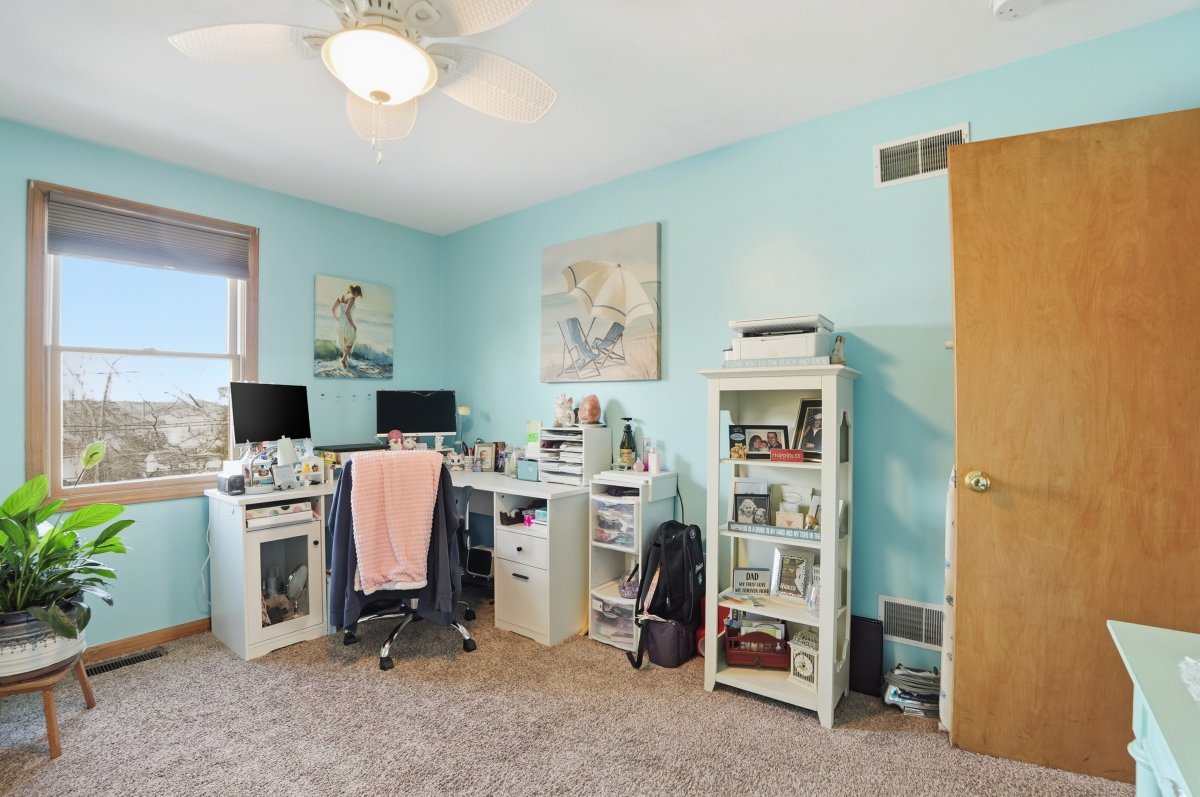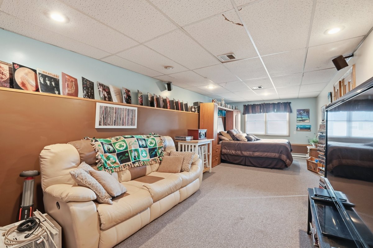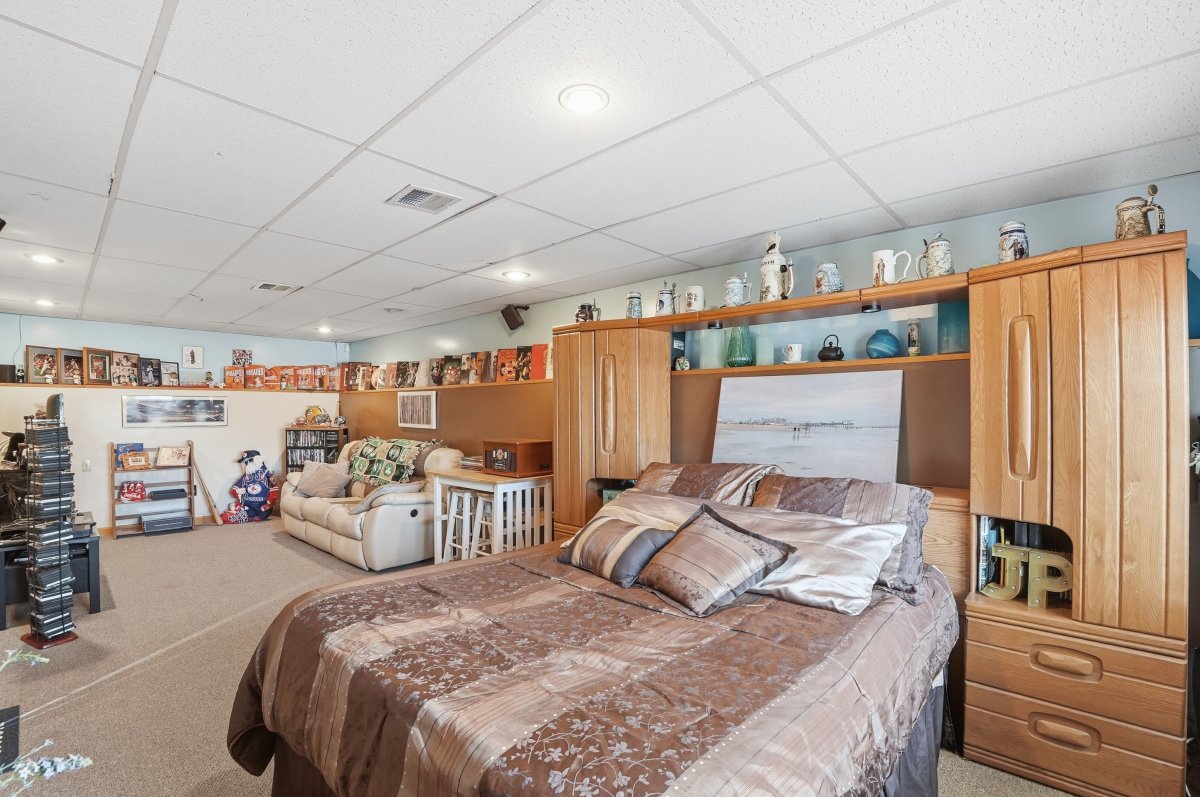 Set on a dead-end street with bay views, this split-entry home offers flexible living space and thoughtful features throughout. The main level includes a bright living room with bay window and ceiling fan, flowing into an open dining area with slider access to the deck. The kitchen is designed for everyday use and entertaining, featuring upgraded cabinetry, stone countertops, a center island, breakfast bar, stainless steel appliances, and gas range. Four well-sized bedrooms provide options for guests, office space, or hobbies. Two full bathrooms include one with a tub and shower and another with a tiled shower stall. The lower level offers additional versatility, possible in law set up, with interior garage access and laundry hookups. Outside, enjoy a fenced yard with deck, gazebo, stone wall, and paved driveway parking. Central air, forced hot air gas heat, security system, and waterfront views complete this well-rounded property.