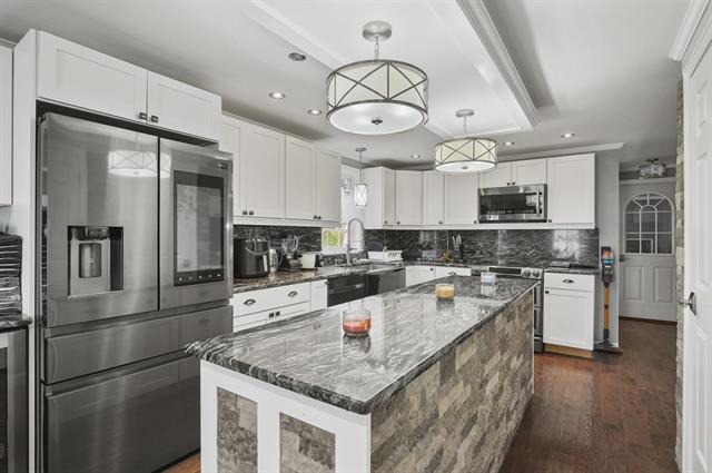 Welcome to this stunning 6-bedroom, 3.5-bath Colonial in Franklin, NH—offering over 3,000 sq. ft. of immaculate living space where pride ofownership shines throughout. Designed for comfort and flexibility, this home is ideal for multi-generational living. The inviting foyer leads to a warm living room featuringa beautiful stone-surround fireplace, open to the stylish eat-in kitchen with white cabinetry, granite countertops, stainless steel appliances, a farmer’s sink, recessedlighting, and a large island for gathering. A formal dining room with wainscoting, convenient half bath, and mudroom with storage and garage access complete the mainlevel. Upstairs, you’ll find two primary suites, each with an en suite bath and walk-in closet, plus two additional spacious bedrooms and a shared full bath. The lower leveloffers even more versatility with two bedrooms, an exercise room with laundry, and a bonus room. Head outside to your private backyard oasis featuring a compositedeck, paver patio, in-ground pool, and fire pit—perfect for relaxing or entertaining. Two car garage attached! This exceptional home truly has it all!